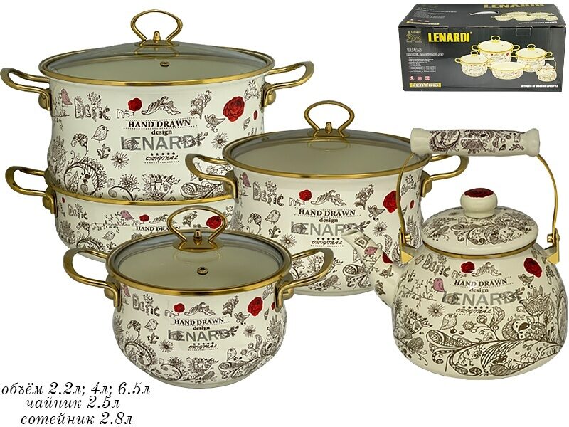 Набор эмалированной посуды из 9 предметов птичий дворик в подарочной упаковке Lenardi