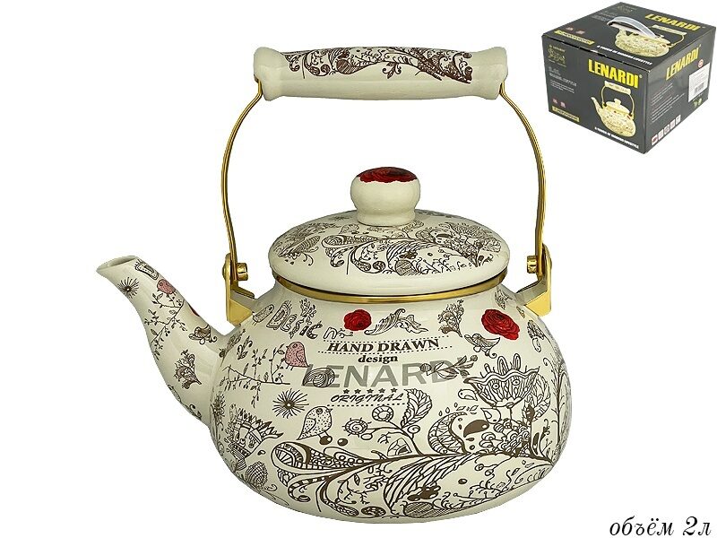 Чайник эмалированный 2,0л птичий дворик в подарочной упаковке Lenardi
