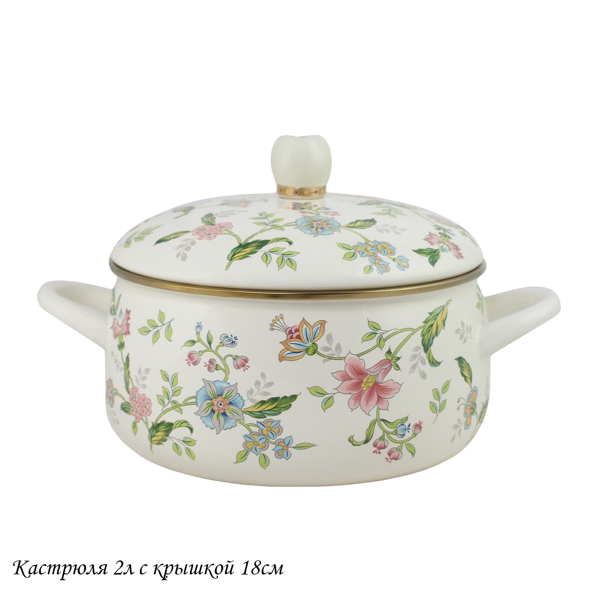 Кастрюля эмалированная 2л Magnolia с крышкой 18см. в подарочной упаковке эмаль Lenardi
