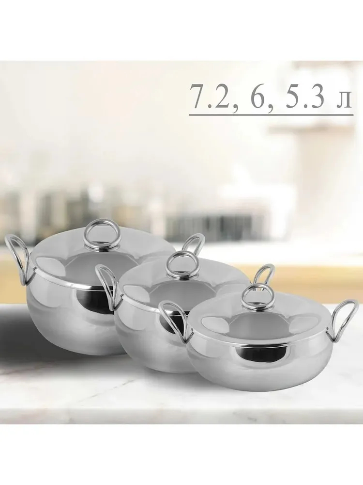 Набор посуды 6 предметов Lenardi Mirrow кастрюли 5.3л, 7,2л, 6л, нержавеющая сталь