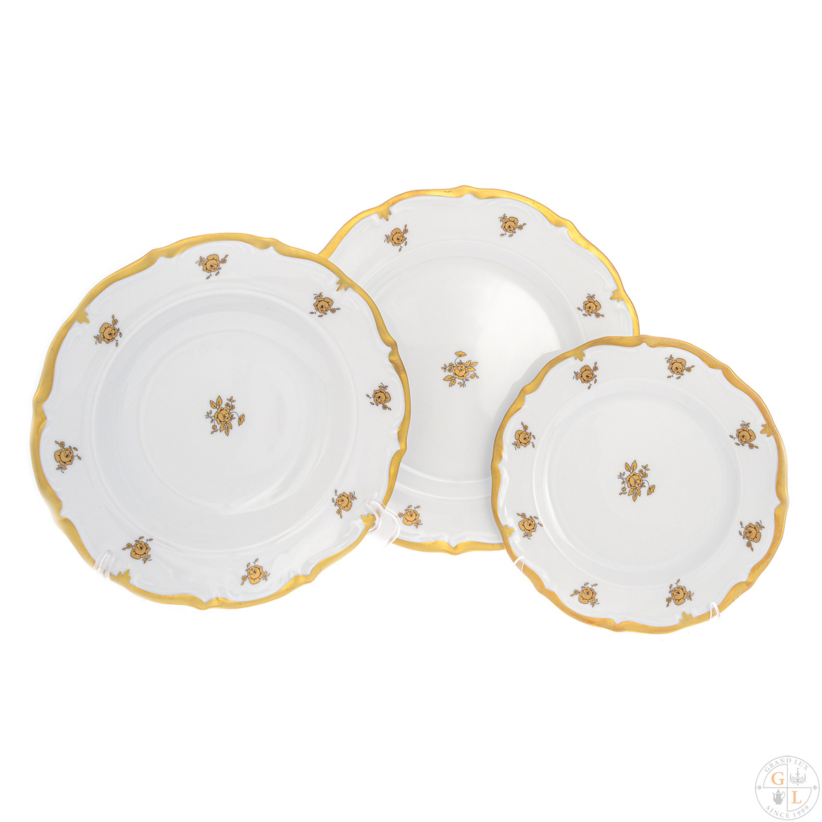 Набор тарелок Queens Crown золотая роза 18 предметов