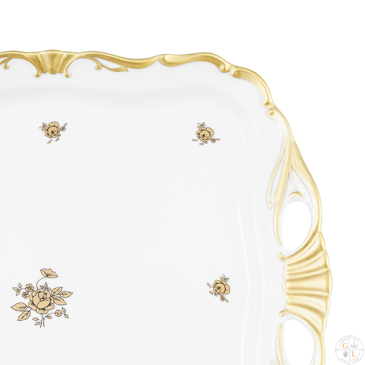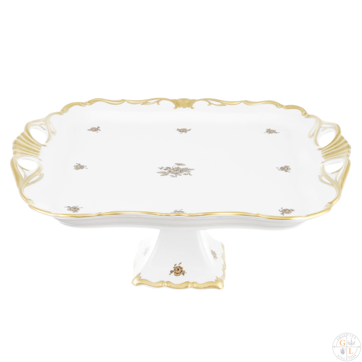 Блюдо квадратное на ножке Queens Crown золотая роза 34 см