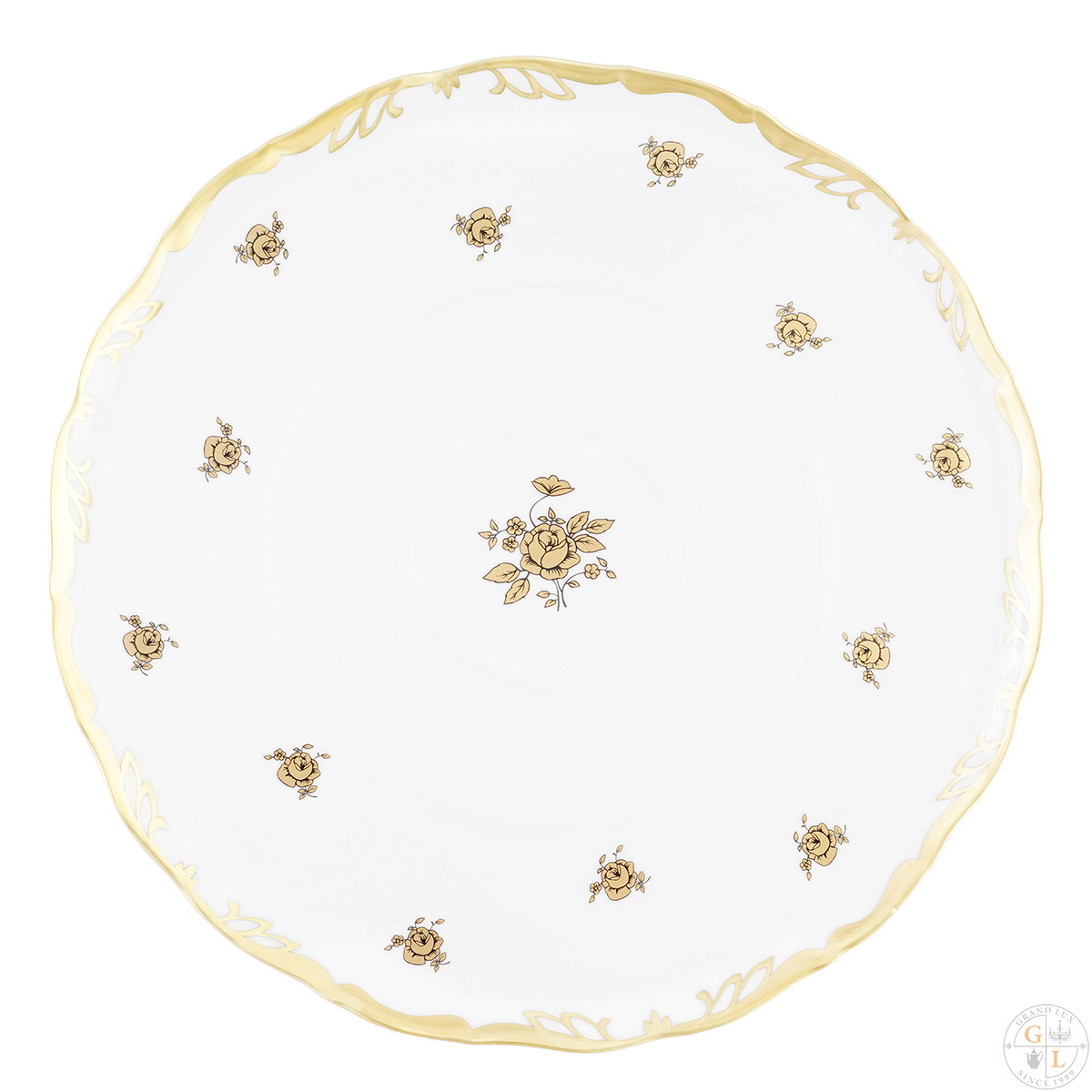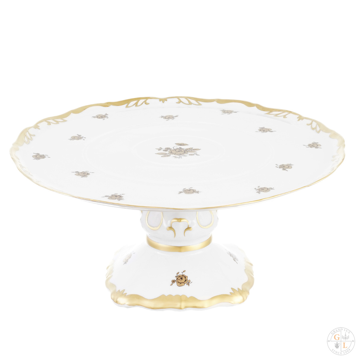 Тарелка для торта на ножке Queens Crown золотая роза 30 см