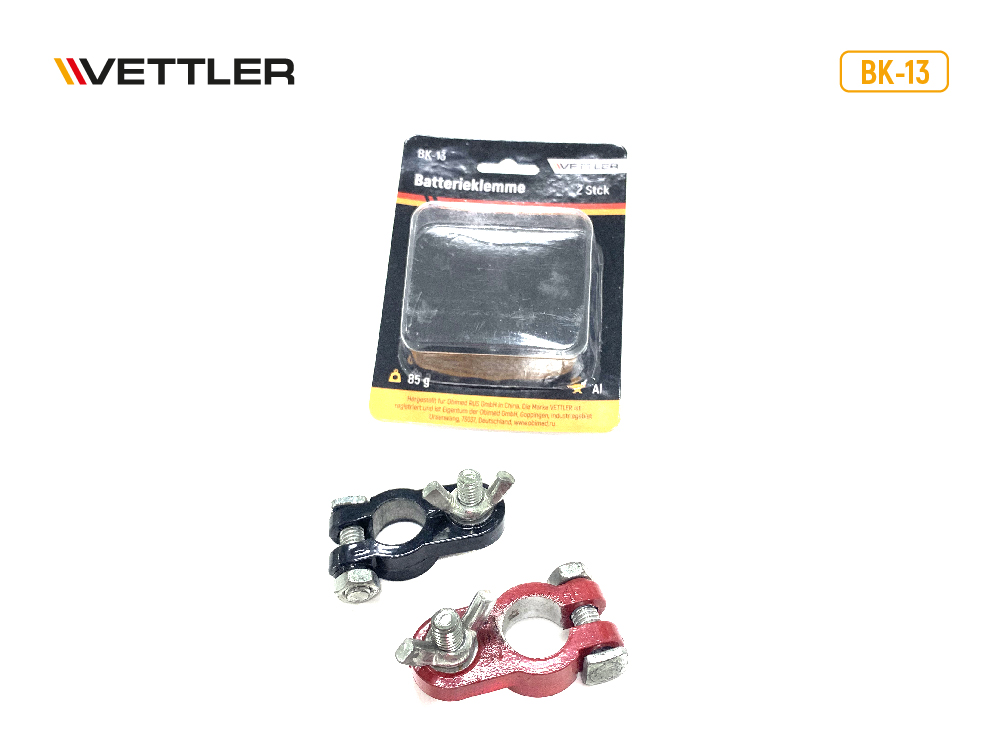 Клемма акб 12/24в алюминий+краска, гайка-барашек (комплект 2 шт.) Vettler