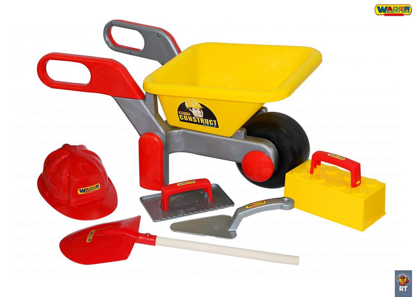 50229 тачка №4 construct + набор каменщика №4 construct wader. Новинка от Wader (Германия). Уникальный набор юного строителя- тележка- тачка на 1 колесике с предметами для игр в песочнице. Теперь не нужно носить в руках формочки, лопатки и лейки-можно все это привезти в тележке во двор к песочнице и затем точно также отвезти. Набор для песочницы состоит из тележки на 1 колесике , лопаты, мастерка, строительной каски, формочки в виде кирпича, шпателя. Все , что необходимо юному строителю для постройки песочного дома. Насыщенный цвет пластикового набора не оставит равнодушным малыша. Все маленькие дети начинают игры с песочницы. Каждый ребёнок в определённом возрасте проходит этап игры с песком и водой. Это очень важное время помогает развивать мелкую моторику, пространственное мышление, фантазию и воображение. Пересыпая сухой песок через сито, засыпая его в мельницу или выстраивая из мокрого песка дворцы и замки, ребёнок спокоен, задумчив, способен размышлять и фантазировать, совершенствуется работа его нервной системы. Таким образом происходит незаметное развитие ребенка. Детям нравится лепить фигурные куличики, строить песчаные замки. При помощи наборов для песочниц от Wader малыш проведет много занимательных часов за увлекательным занятием. Дети оценят эту увлекательную игру на свежем воздухе. Наборы для игр с песком включают большое количество предметов, с помощью которых малыш сможет создать интересную композицию из песка. Формочки упаковываются в удобную тележку. Все детали набора очень легко и просто моются. Вы можете использовать его в песочнице и на пляже. Игры в песочнице развивают мелкую моторику рук, воображение и память. Песочный набор не оставит равнодушным ни одного малыша! Материал: пластмасса. Упаковка: сетка. Рекомендуется для детей от 3 лет. Прочие Торговая Марка Wader ШтрихКод 4810344050229 Базовая единица шт Размер (см) 70х47х65, 5 Артикул 00000004694 Вес (кг) 2 Размеры в упаковке (см) 70х47х65, 5 Вес в упаковке (кг) 2 Объем в упаковке 0, 215 Артикул2 50229 Бренд Wader