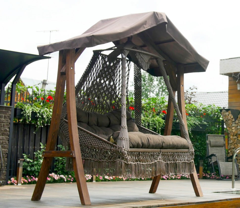 Подвесное кресло lite seara + каркас lite каравелла, садовая мебель. Подвесные качели качели СЕАРА – это, прежде всего необычный дизайн! Подвесные качели можно закрепить конструкцией верхним креплением или подвесить на надежный деревянный каркас КАРАВЕЛЛА.Каркас Каравелла из дерева специально создавался дизайнерами для подвесных качелей СЕАРА. Особенная деталь каркаса – это необычная крыша с чехлом и небольшой красивой плетеной бахромой наверху. Такая крыша защитит и от яркого солнца и непогоды, поэтому каркас идеально подходит для эксплуатации в различных погодных условиях, не боится жары, холода, влажности. Легкая сборка, пропитка дерева, прочность и оригинальность конструкции позволяют отдыхать с максимальным комфортом. Размер, см 200х110х240 Страна производства Китай Максимальная нагрузка, кг 200