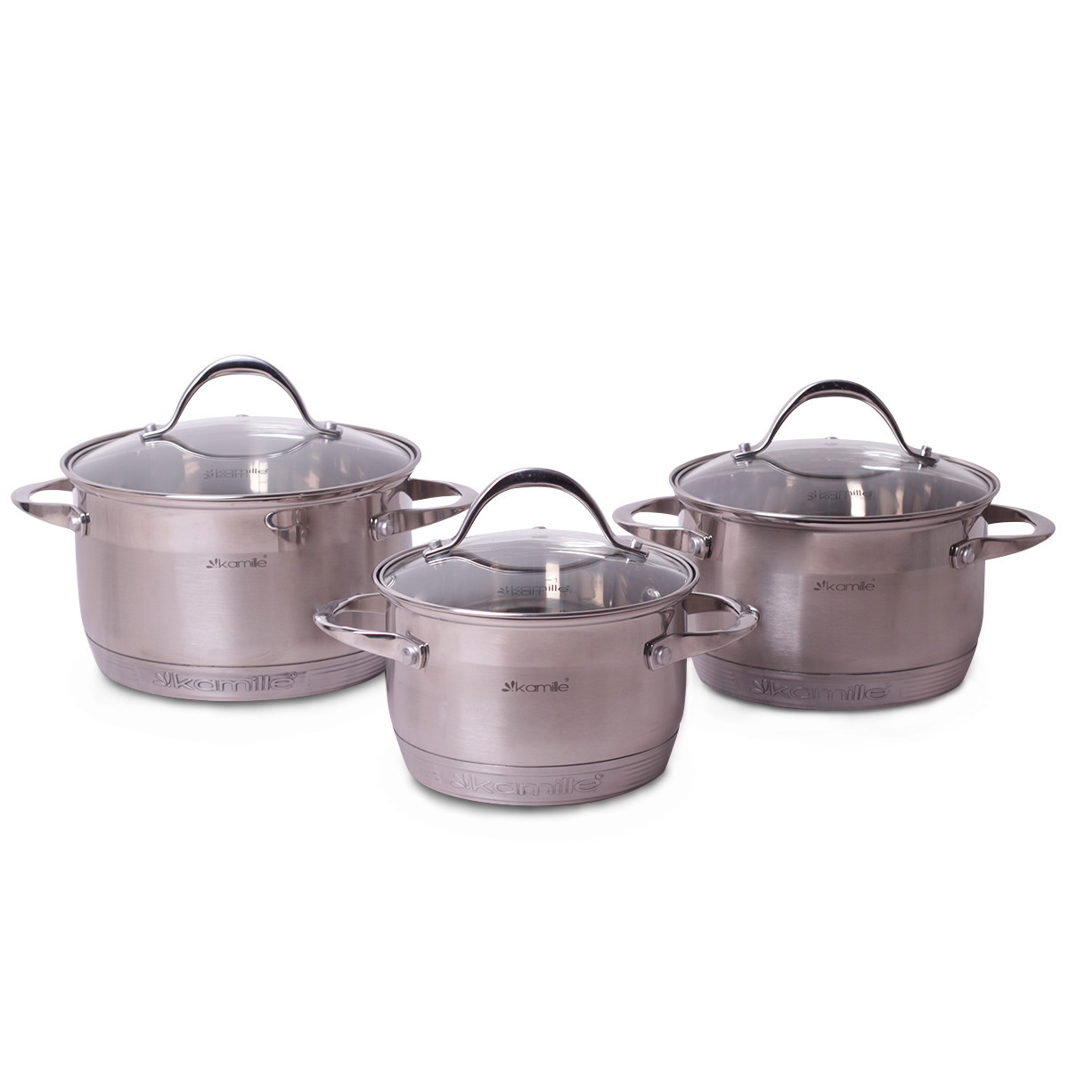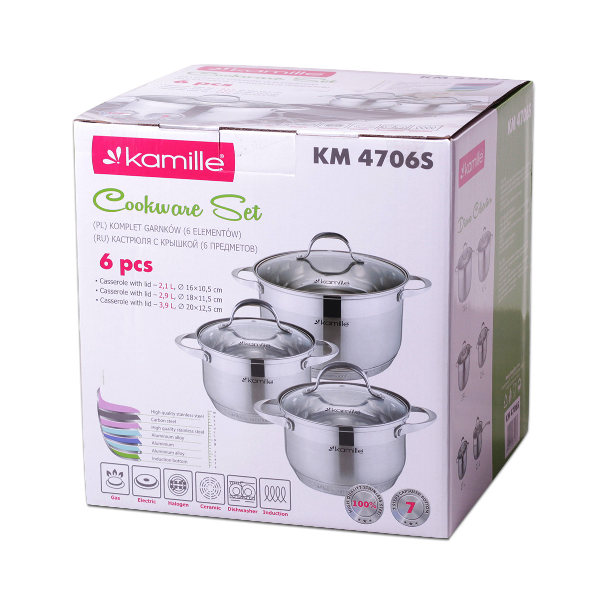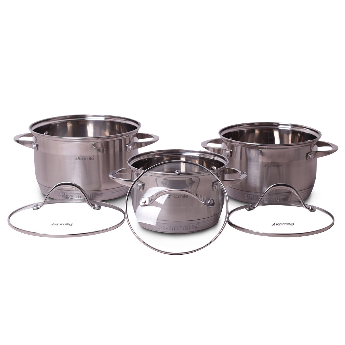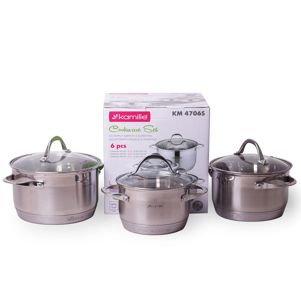 Набор кастрюль Kamille из нержавеющей стали 6 предметов (1.8л, 2.3л, 3.3л)