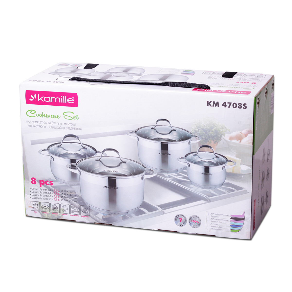 Набор кастрюль 8 предметов Kamille Km-4708s (1.8 л, 2.3 л, 3.3 л, 5.8 л; 7