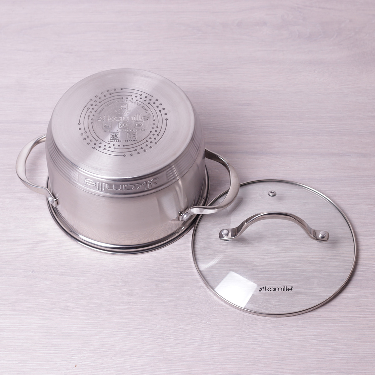 Описание: Кастрюля Kamille — нужная и незаменимая вещь на Вашей кухне. Кастрюля выполнена из качественных материалов с использованием современных технологий производства. Такая кастрюля имеет прекрасный внешний вид, оснащена 7-слойным капсульным дном и отличается высокой прочностью и долговечностью в использовании. Благодаря своим эргономичным свойствам, кастрюля будет служить Вам очень долго и принесет только удовольствие от использования.