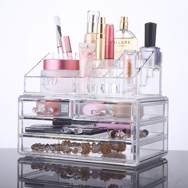 Большой вместительный органайзер для всех типов косметики. В основании - три уровня с ящиками. Два маленьких и два больших. Сверху - съемная подставка с ячейками. Органайзер можно комбинировать с другими органайзерами этой категории.