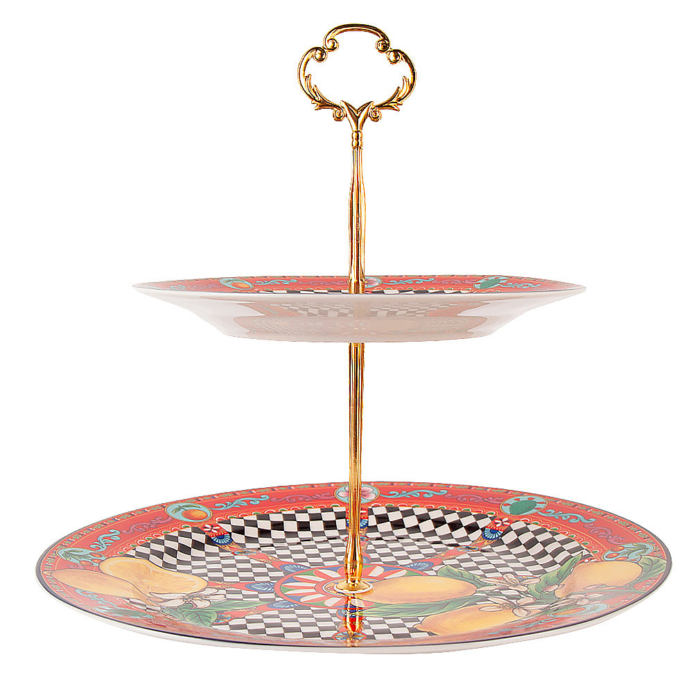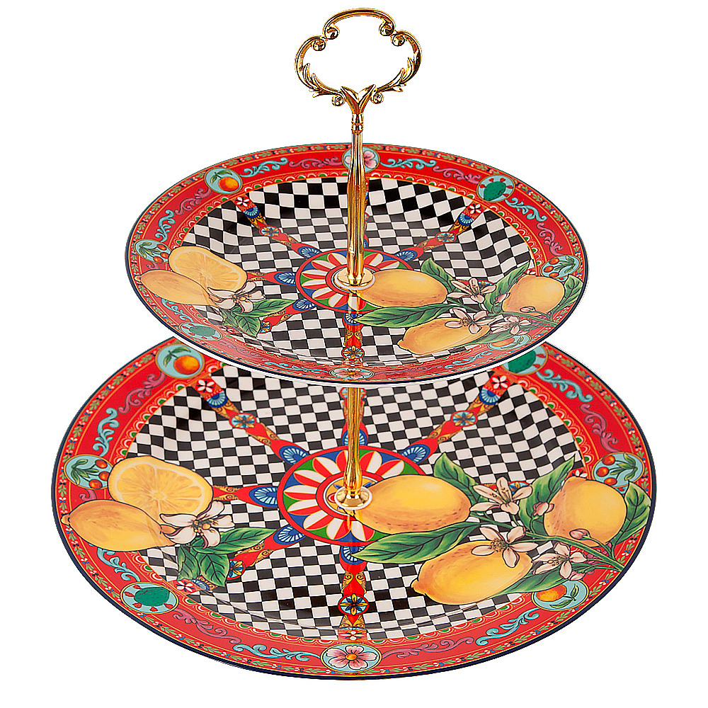Фруктовница 2-х ярусная sicilia limone d=27/19см h=24,5см (фарфор) (подарочная упаковка). Представляем вам коллекцию посуды из фарфора Sicilia Limone от Nouvelle Home - идеальный выбор для тех, кто ценит красоту и функциональность в каждой детали. Эта коллекция порадует вас яркими деталями в дизайне, в виде изображений сочного лимона, которые придают посуде особый шарм и неповторимый вид. В коллекции Sicilia Limone представлен широкий выбор изделий: тарелки различных размеров, чашки, кружки, салатницы и многое другое. Вы сможете создать полноценный сервиз, который станет ярким акцентом на вашем столе и порадует не только вас, но и ваших гостей. Особенностью этой коллекции является не только ее дизайн, но и удобство использования. Вся посуда изготовлена из качественного фарфора, который не только красив, но и прочен. Вы можете не беспокоиться о том, что посуда сколется или потускнеет - она прослужит вам долгие годы. Посуда Sicilia Limone от Nouvelle Home удобна в уходе - вы можете мыть ее в посудомоечной машине, что значительно облегчит вам повседневные заботы. Кроме того, посуду этой коллекции можно использовать в микроволновой печи, что делает ее универсальной и практичной. Кроме того, каждое изделие упаковано в стильную подарочную упаковку, что делает посуду из коллекции Sicilia Limone отличным подарком к любому празднику. Это идеальный подарок для тех, кто ценит красоту и уют в своем доме. Посуда Sicilia Limone от Nouvelle Home - это не просто праздничная посуда, это посуда, которую можно использовать каждый день, радуя себя и близких красотой и удобством. Приобретите эту уникальную коллекцию и создайте атмосферу радости и уюта в своем доме! Фруктовница 2-х ярусная Sicilia Limone d=27/19см h=24,5см (фарфор) (подарочная упаковка) Упаковка: Цветная коробка Цвет основной: Мультицвет Комплектация: Фруктовница - 1 шт Использование в СВЧ: Да Мытье в посудомоечной машине: Да Рисунок: Лимоны Форма: Круглая  развернуть описание ▼