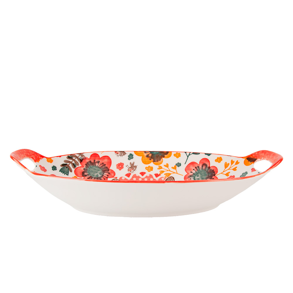 Блюдо с ручками kawaii forest.bunny27*16*4см. v=450мл. (min9) (фарфор). Блюдо с ручками Kawaii Forest.Bunny27*16*4см. v=450мл. (min9) (фарфор) Упаковка: Без индивидуальной упаковки Объем, мл: 450 Цвет основной: Красный Комплектация: Блюдо - 1 шт Использование в СВЧ: Да Мытье в посудомоечной машине: Да Рисунок: Животное Форма: Овальная  развернуть описание ▼
