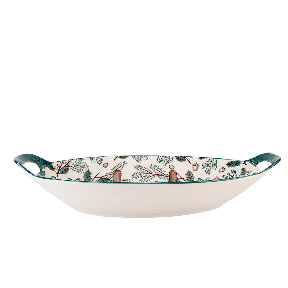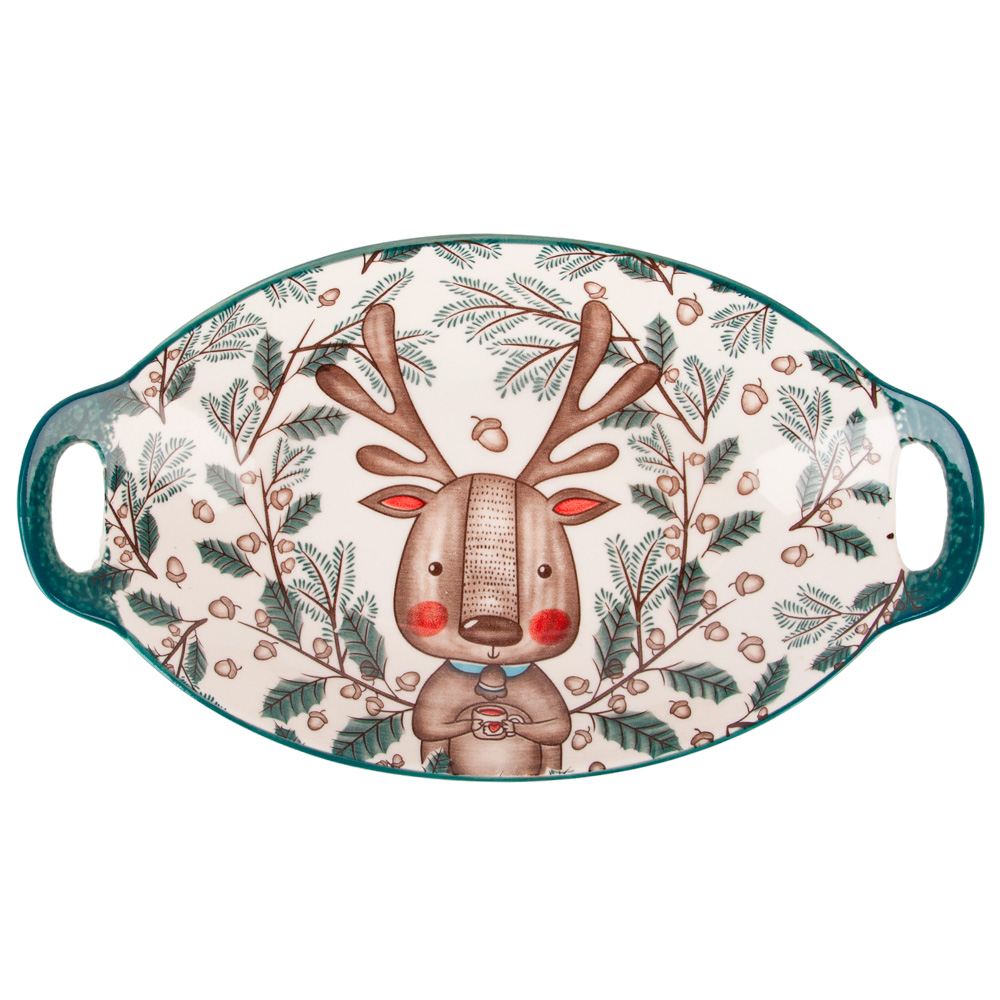 Блюдо с ручками kawaii forest.deer27*16*4см. v=450мл. (min9) (фарфор). Блюдо с ручками Kawaii Forest.Deer27*16*4см. v=450мл. (min9) (фарфор) Упаковка: Без индивидуальной упаковки Объем, мл: 450 Цвет основной: Зеленый Комплектация: Блюдо - 1 шт Использование в СВЧ: Да Мытье в посудомоечной машине: Да Рисунок: Животное Форма: Овальная  развернуть описание ▼