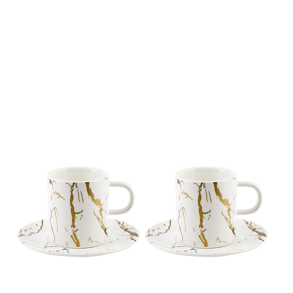 Набор: 2 чашки V=100 мл и 2 блюдца белый мрамор (подарочная упаковка)