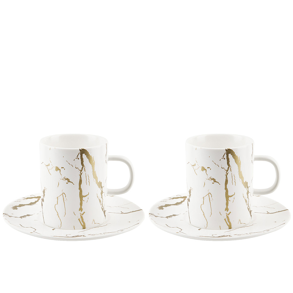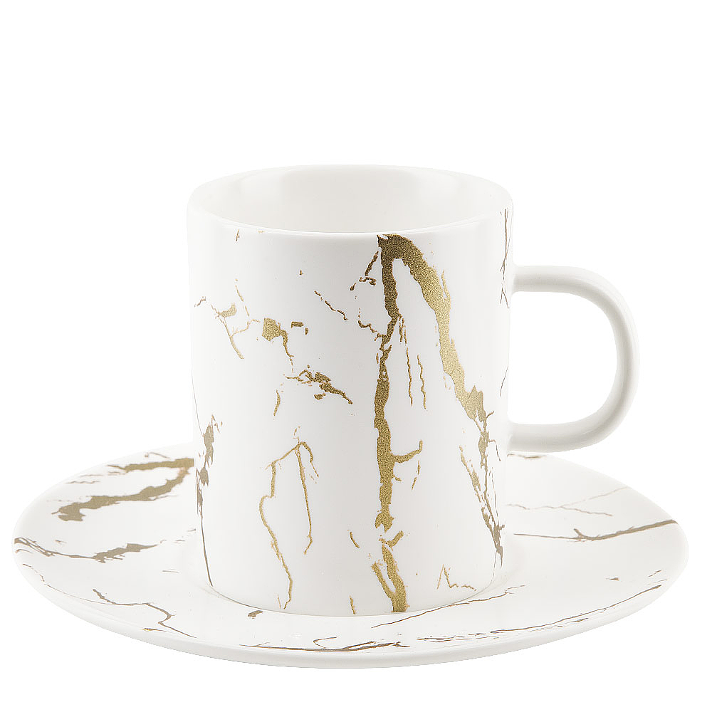 Набор: 2 чашки V=220 мл и 2 блюдца белый мрамор (подарочная упаковка)