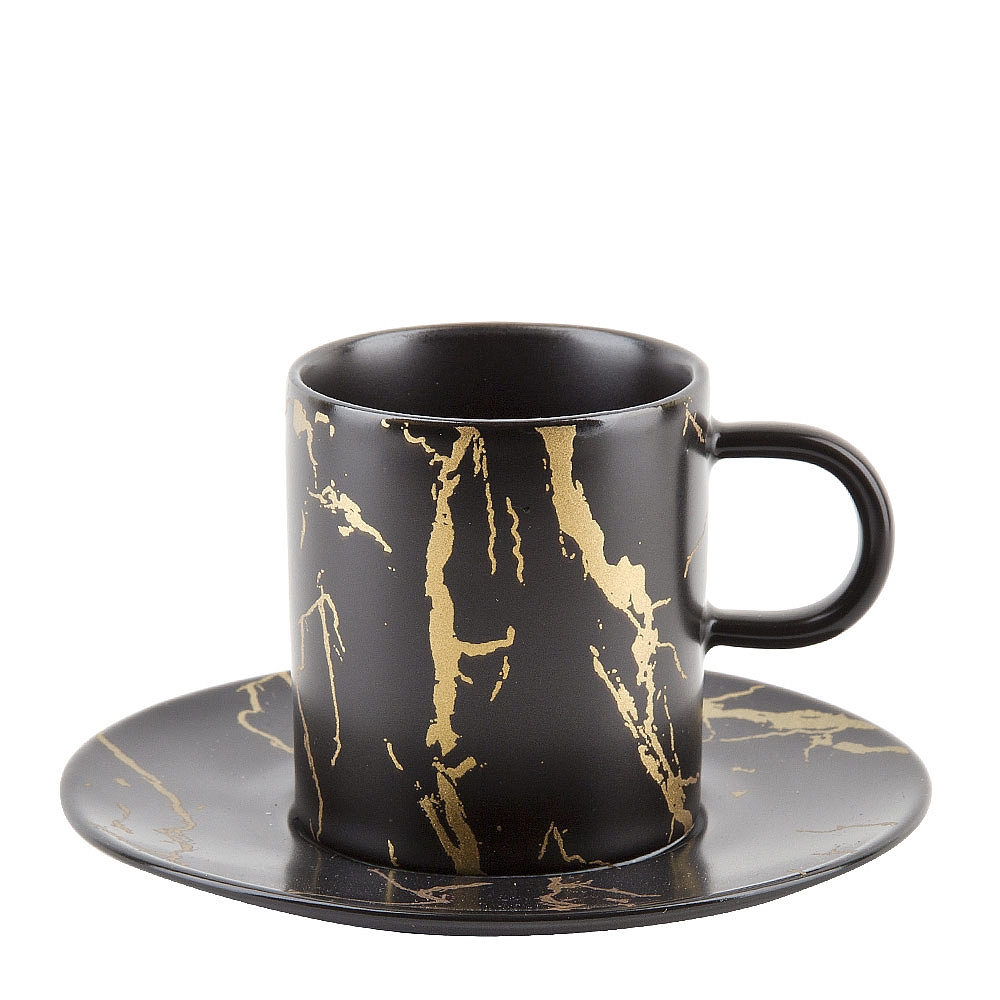 набор: 2 чашки 100 мл и 2 блюдца черный мрамор, подарочная упаковка