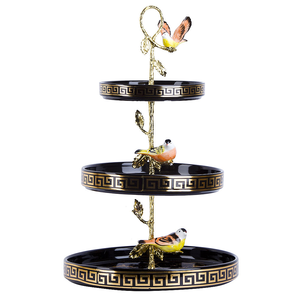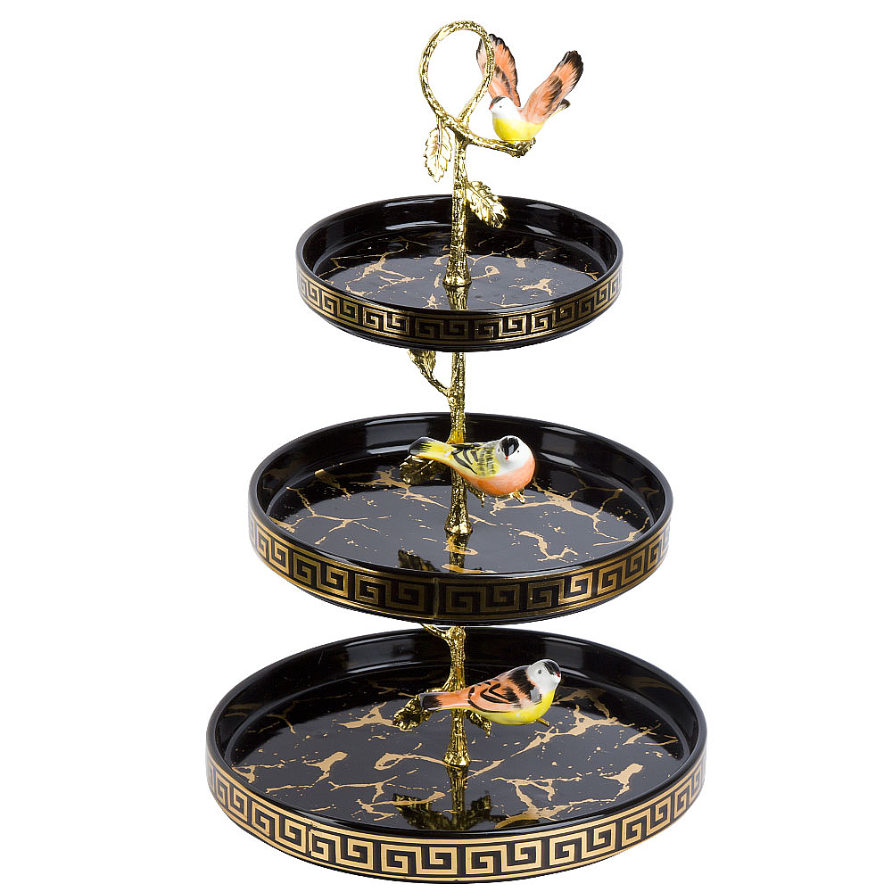 Блюдо 3-х ярусное черный мрамор 25*25*39 см (подарочная упаковка)