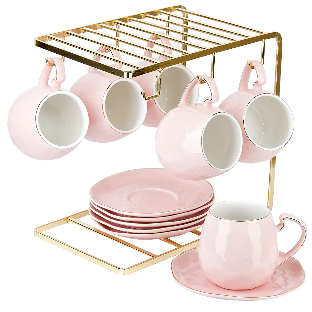 Чашка - 6 шт, блюдце - 6 шт, подставка - 1 шт