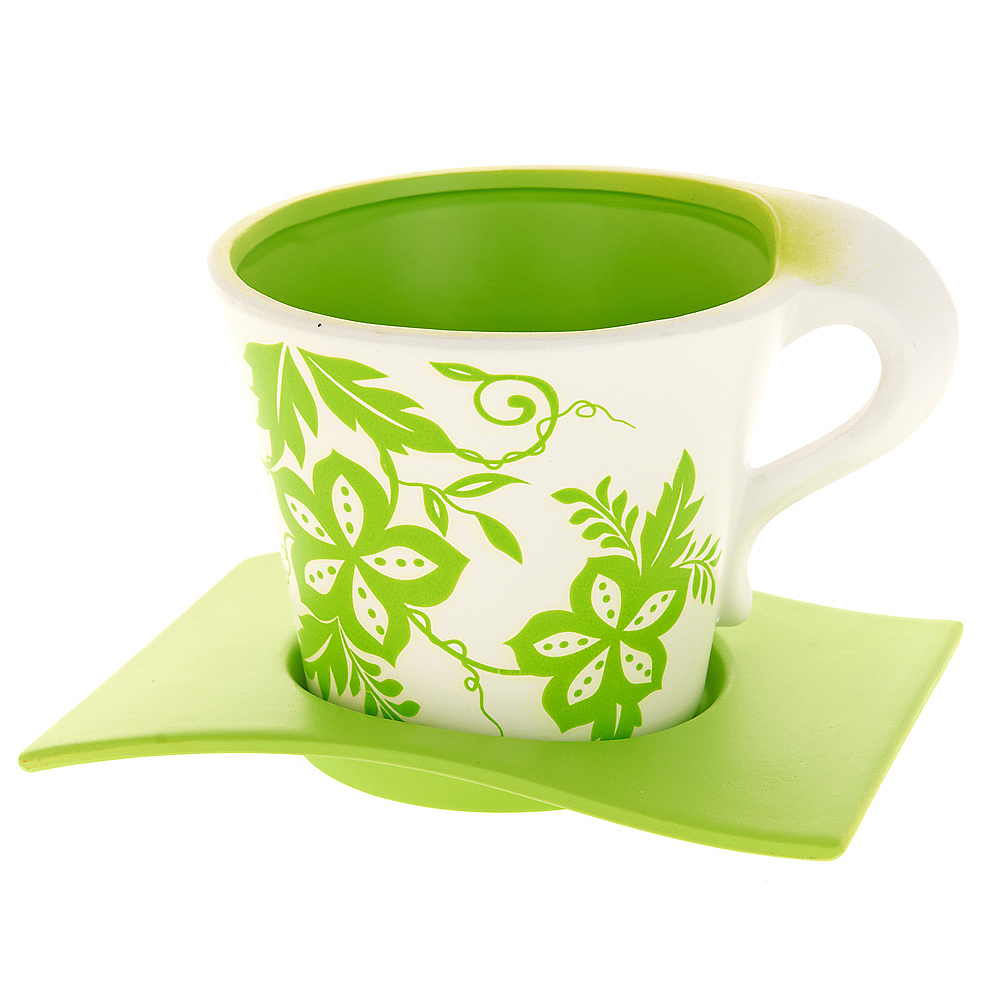 Горшок для цветов с поддоном салатовый узор D=15см. H=13,5см. V=1250мл. (т