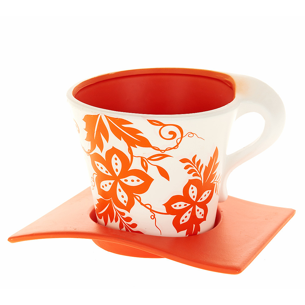 Горшок для цветов с поддоном оранжевый узор D=15см. H=13,5см. V=1250мл. (т