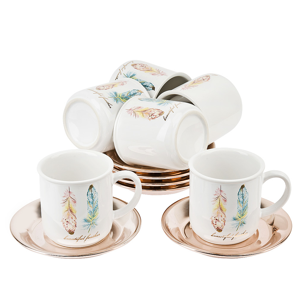 Чайный сервиз 12 предметов перья (6 персон) V=250мл (керамика)