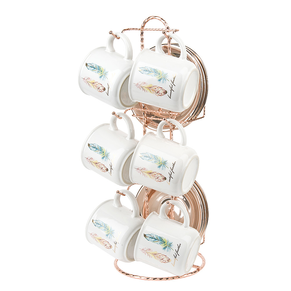 Кофейный сервиз 12пр. перья (6 персон) на металлической подставке V=150мл