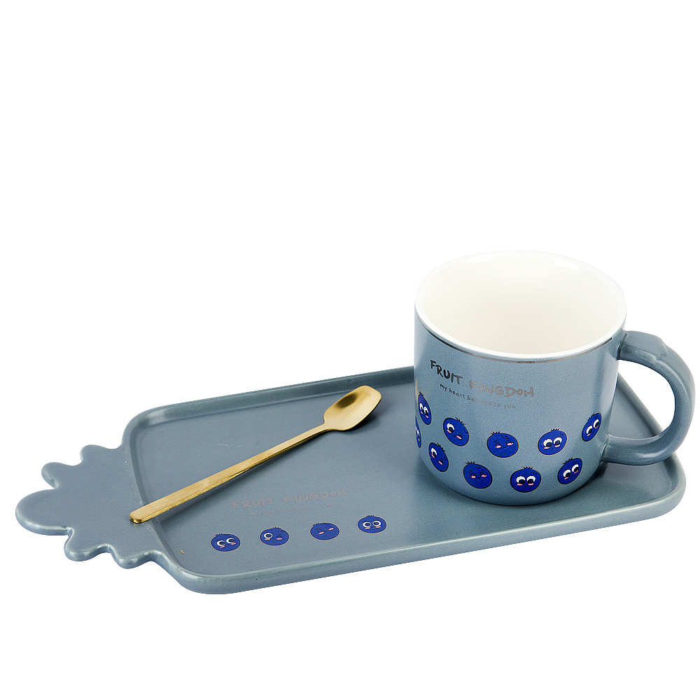 Чашка с блюдцем и ложкой голубика V=240мл