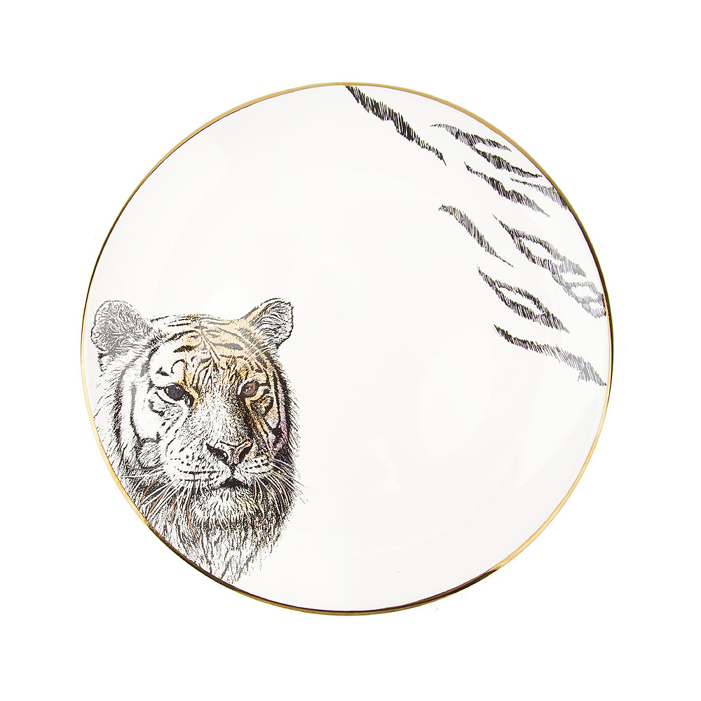 Тарелка (с золотой обводкой) саванна/тигр 15*15*2см
