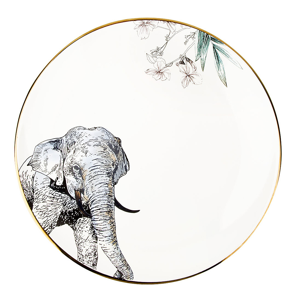 Тарелка (с элементами золота) саванна/слон 30*30*3см. (min6)