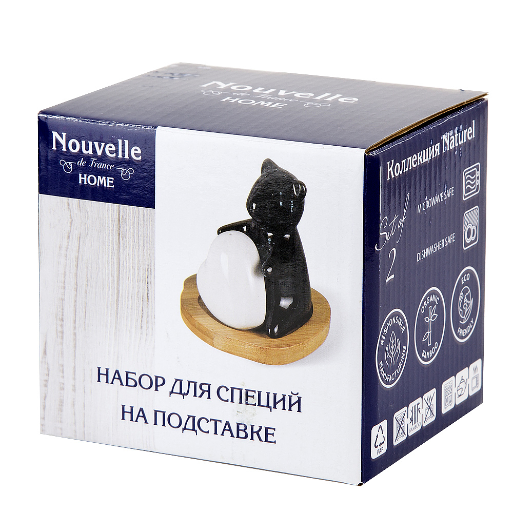 Набор для специй солонка/перечница на бамбуковой подставке Naturel 10*10*10см.