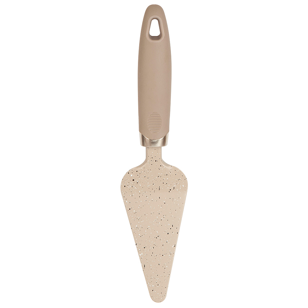 лопатка для десертов гранит бежевый 26,5х6х2см, нержавеющая сталь с покрытием, полипропилен с прорезиненным покрытием soft-to. ручка с прорезиненным покрытием soft-touch. Настоящая нежность прикосновения в коллекции Гранит . Коллекция Гранит выполнена из исключительно качественных материалов - разработчики серии использовали высокопрочную нержавеющую сталь, износостойкий нейлон, а главное, полипропилен с современным покрытием soft-touch. Благодаря тому, что в линейку входит более десяти наименований, кухонные принадлежности из коллекции Гранит способны покрыть потребности не только самой привередливой хозяйки, но и специалистов занимающихся готовкой профессионально. Не подвели и дизайнерские решения - стилизованное под гранит покрытие смотрится невероятно эффектно, а главное актуально. Коллекция Гранит соответствует всем нормам безопасности и прекрасно подходит для любых пищевых продуктов. Поставляются изделия в практичном упаковочном пакете. Лопатка для десертов Гранит бежевый 26,5х6х2см (нержавеющая сталь с покрытием, полипропилен с прорезиненным покрытием soft-touch) (упаковочный пакет) Материал: Нержавеющая сталь с покрытием, ручка: полипропилен с прорезиненным покрытием soft-touch Упаковка: Упаковочный пакет Цвет основной: Бежевый Комплектация: Лопатка - 1 шт Использование в СВЧ: Нет Мытье в посудомоечной машине: Да  развернуть описание ▼
