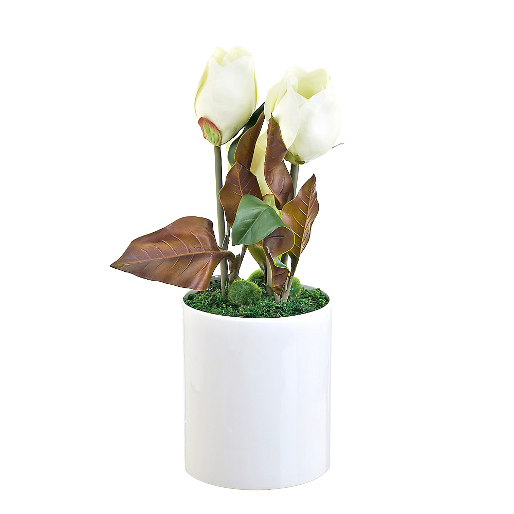Композиция декоративная (с подсветкой) Белые цветы (с эффектом натуральных лепестков, в керамическом горшке) d=18см. h=49см. (батарейка-3AA)