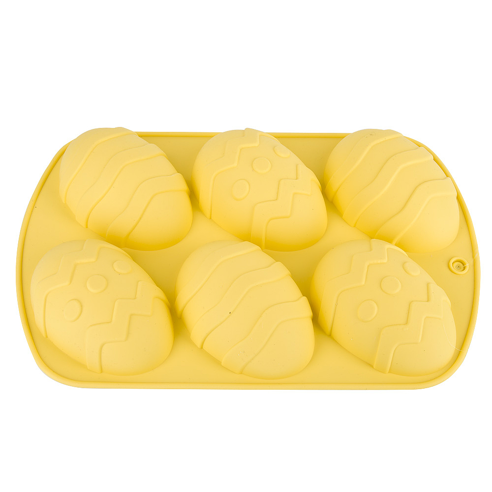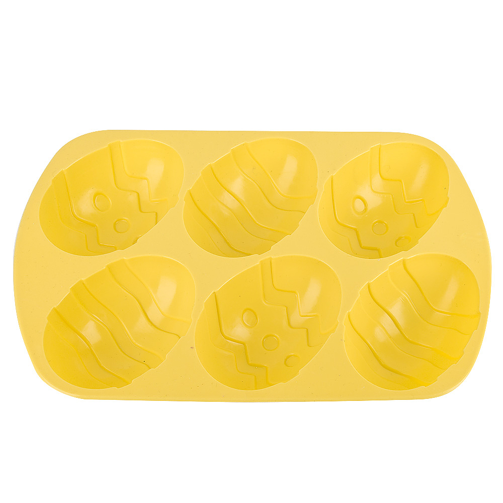 форма силиконовая для выпечки 6 ячеек яйцо 27x17,5x3,5см. 4вида . Размер одной ячейки: 9,5х6,5х3,5см. Не использовать на открытом огне, а также острые и режущие предметы. Температура использования от -40 до +230 градусов. Форма силиконовая для выпечки 6 ячеек Яйцо 27*17,5*3,5см Упаковка: Без индивидуальной упаковки Цвет основной: Желтый Комплектация: Форма - 1 шт Использование в СВЧ: Нет Мытье в посудомоечной машине: Да Рисунок: Без рисунка Форма: Прямоугольная  развернуть описание ▼