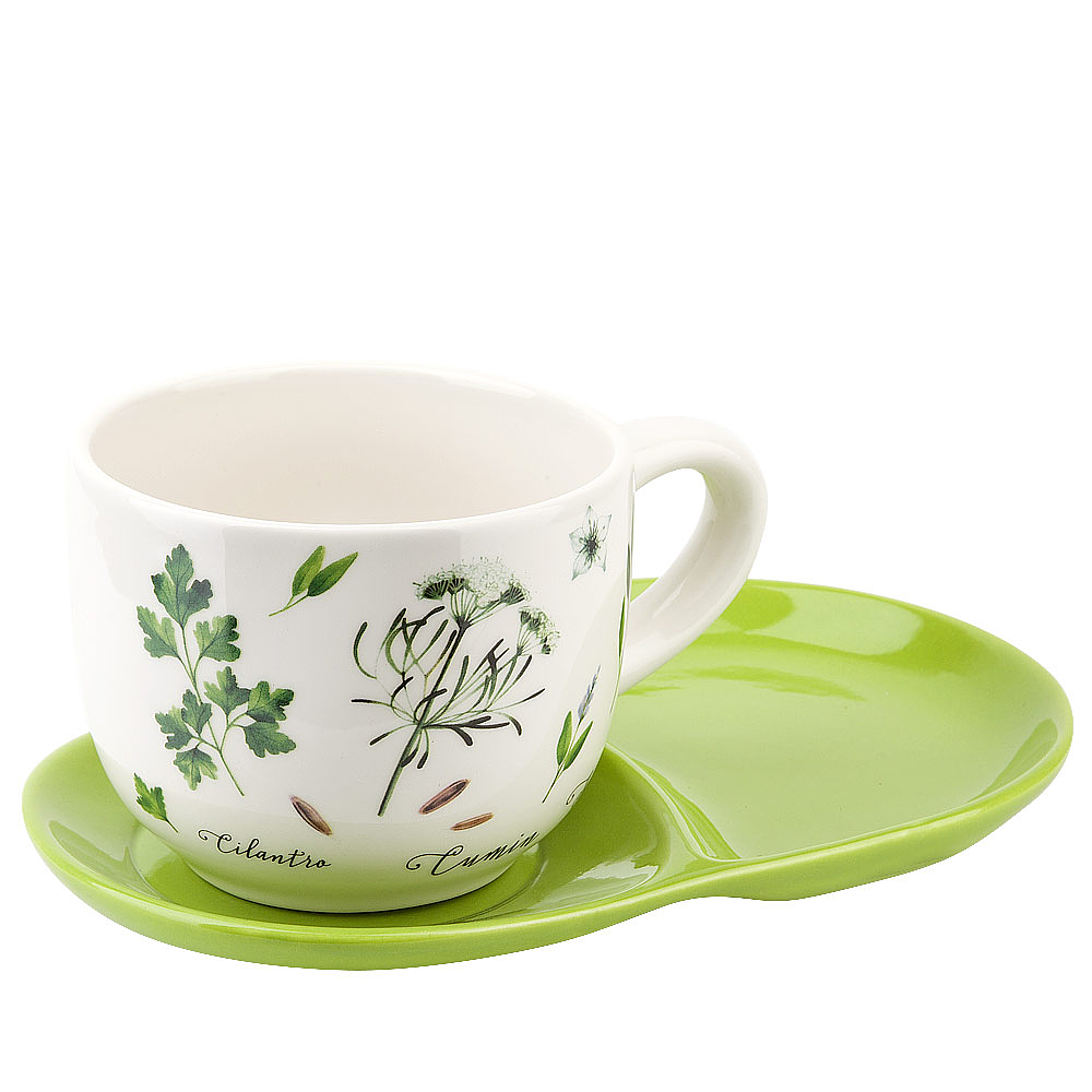 Набор для завтрака: чашка и блюдце душистые травы 23*15*10,5см. V=500мл. (керамика)