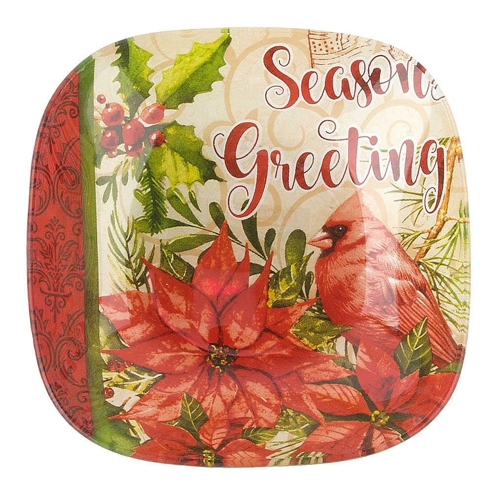 Блюдо "красный кардинал" 14.5*14.5*4см (стекло)
