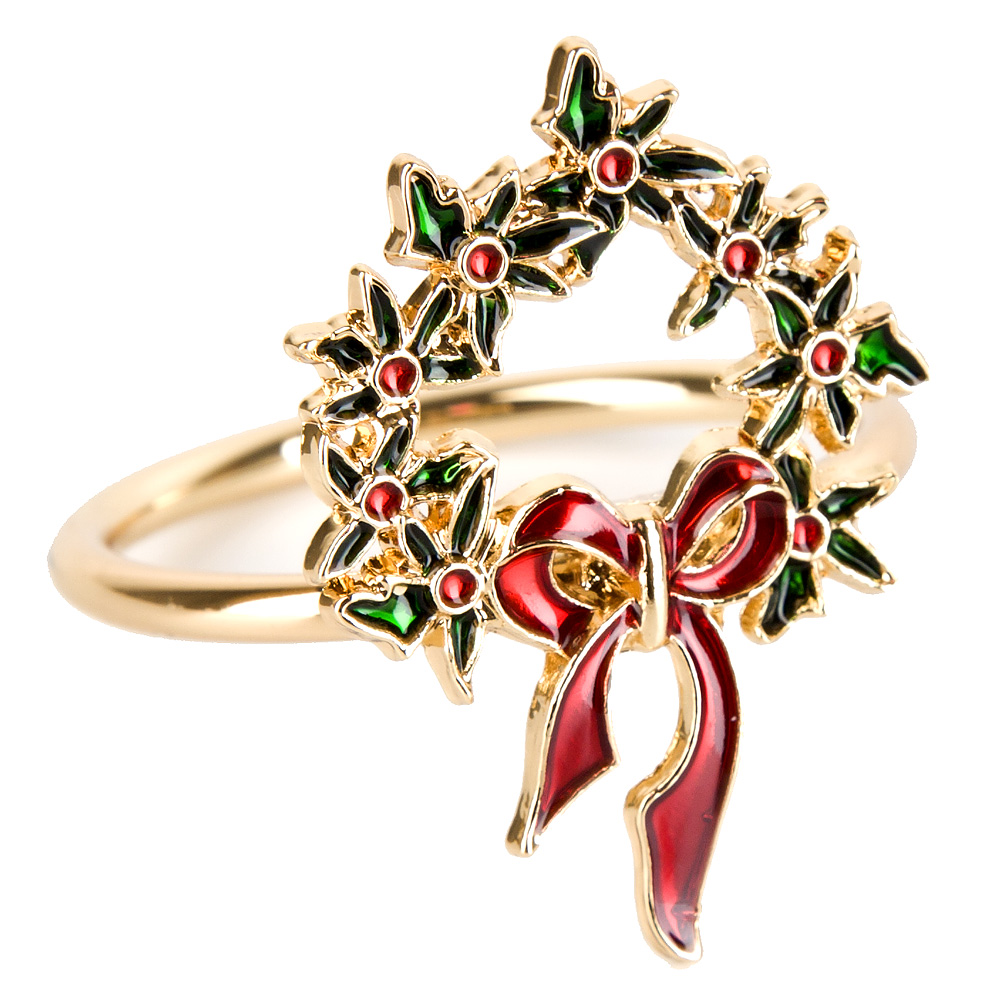Кольцо для салфеток рождественский венок 4х4х4см (min12) (упаковочный пакет)