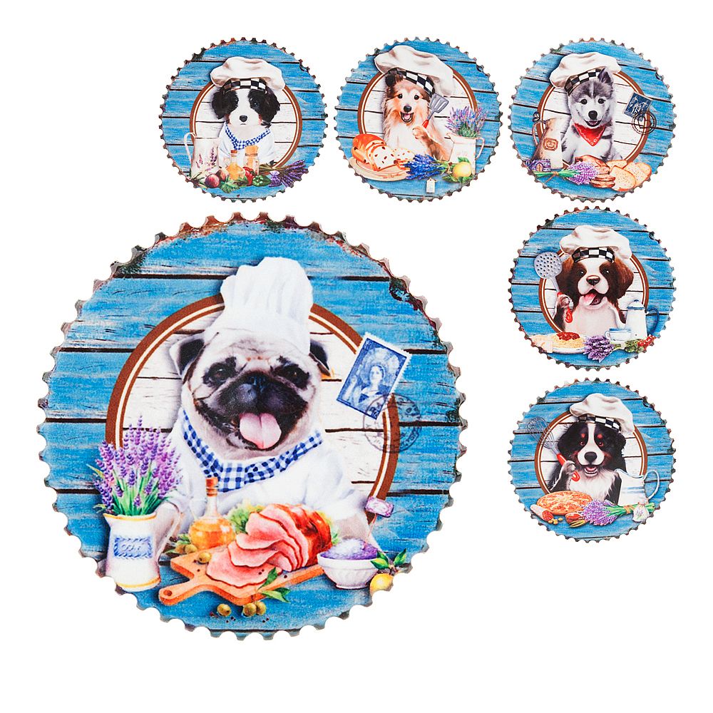 Фигурка декоративная (магнит) собачка-кок D=7см. B=0.5см. (6видов) (min12)