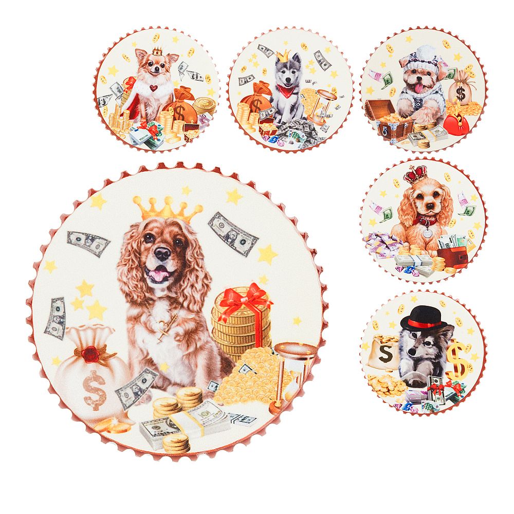 Фигурка декоративная (магнит) собачка-королева D=7см. и=0,5см. (6видов) (m