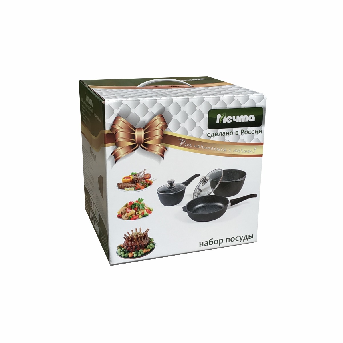 001701 набор №1 (каст. 5л; сковор. 26 см; ковш на 1,7 л со сьемн. руч. и с крышкой) ап гранит