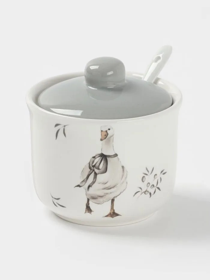 Сахарница с ложкой доляна "гуси", доломит, размер 10х9 см, объем 300 мл, белая