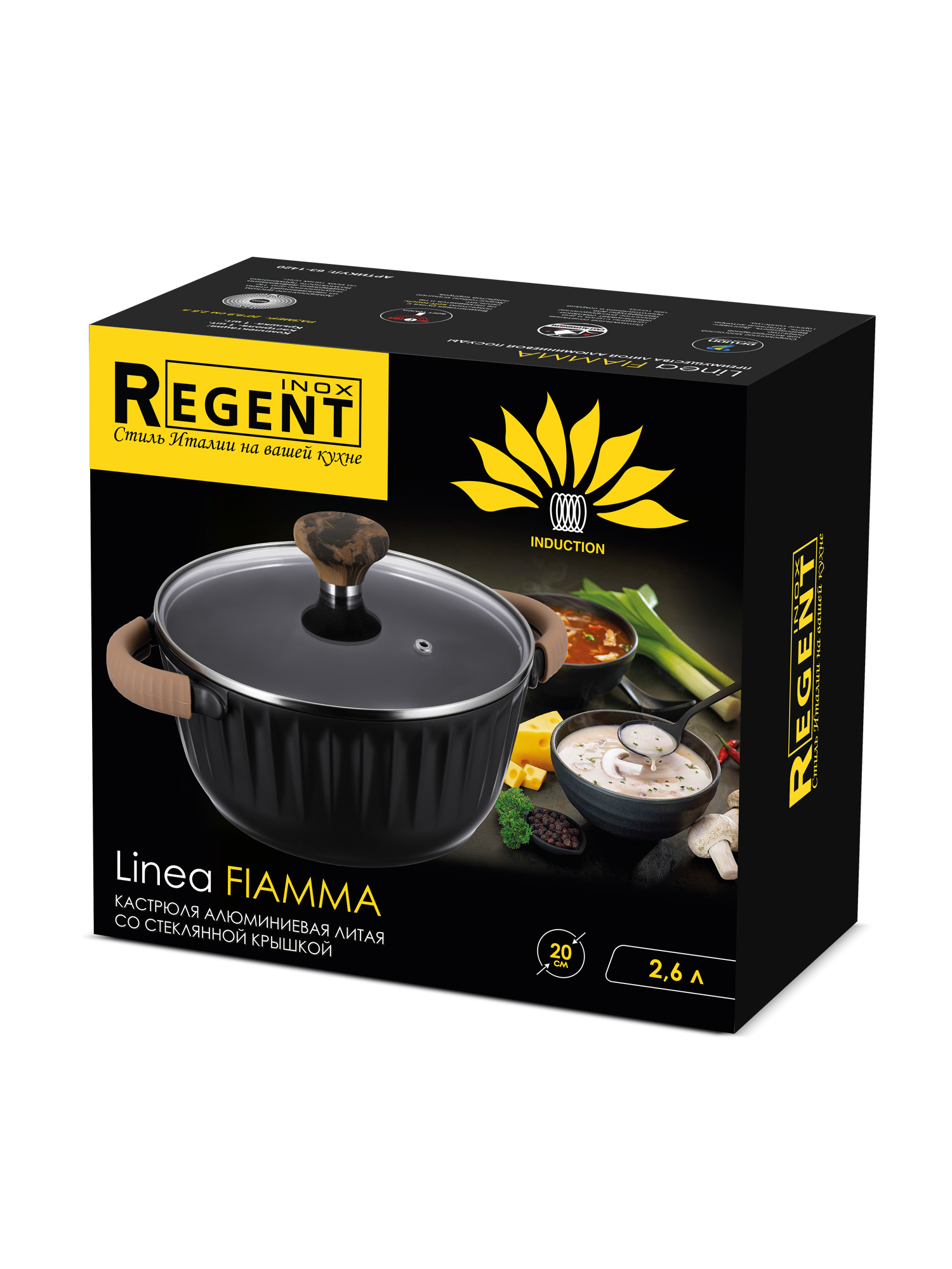 63-1420 кастрюля 2,6л с крышкой 20см linea fiamma (индукция). Linea FIAMMA - посуда из высококачественного литого алюминия. Благодаря прочному, износостойкому антипригарному покрытию Pfluon, наша посуда идеальна для приготовления блюд с минимальным количеством масла. Антипригарное внутреннее покрытие на водной основе не содержит кадмия, свинца и перфтроктановой кислоты (PFOA). Оптимальное сочетание толщины стенок и дна обеспечивает сбалансированное распределение температуры для приготовления и сохранения тепла. Армированное диском из нержавеющей стали индукционное дно. Не подвержено деформации. Возможность применения на всех типах плит. Бакелитовая ручка с покрытием soft-touch: не нагревается и не скользит. Силиконовые съемные ручки выполняют роль ручек-прихваток, легко снимаются позволяя использовать посуду без стеклянной крышки в духовом шкафу. Жаростойкое внешнее покрытие корпуса выдерживает до #43;230?C градусов. Материал изготовления: литой алюминий, бакелит Общая длина изделия, мм: 275. 000 Ширина изделия, мм: 210. 000 Линия: FIAMMA Ширина индивидуальной упаковки, мм: 120. 000 Высота индивидуальной упаковки, мм: 220. 000 Вес единичного товара нетто, кг: 1. 118 Литраж, л: 2. 6 Высота изделия до самой высокой точки изделия, мм: 160. 000 Толщина стенок, мм: 1. 6 Толщина дна, мм: 4. 5 Тип ручки: несъёмная Длина ручки, мм: 35,35 Ширина ручки, мм: 10 Материал ручки: силикон, литой алюминий Крышка: да Материал крышки: стекло, нержавеющая сталь, бакелит Длина крышки, мм: 210 Высота крышки с ручкой, мм: 60 Материал ободка на крышке: нержавеющая сталь Пароотвод на крышке: да Материал ручки крышки: бакелит Диаметр индукционного дна, мм: 155 Дно (капсульное/нет): да Можно использовать в микроволновой печи?: нет Можно использовать в духовом шкафу?: нет Можно мыть в посудомоечной машине?: да Штрихкод товара в транспортной упаковке: 14610275963110 Техданные: Размер изделия: 275х210х160 мм; Вес: 1,118кгМатериал изготовления: литой алюминий, бакелитТолщина дна: 4,5ммТолщина стенок: 1,6мм. Длина индивидуальной упаковки, мм: 230. 000 Высота изделия (внешняя по борту изделия), мм: 99. 000 Ширина крышки, мм: 210