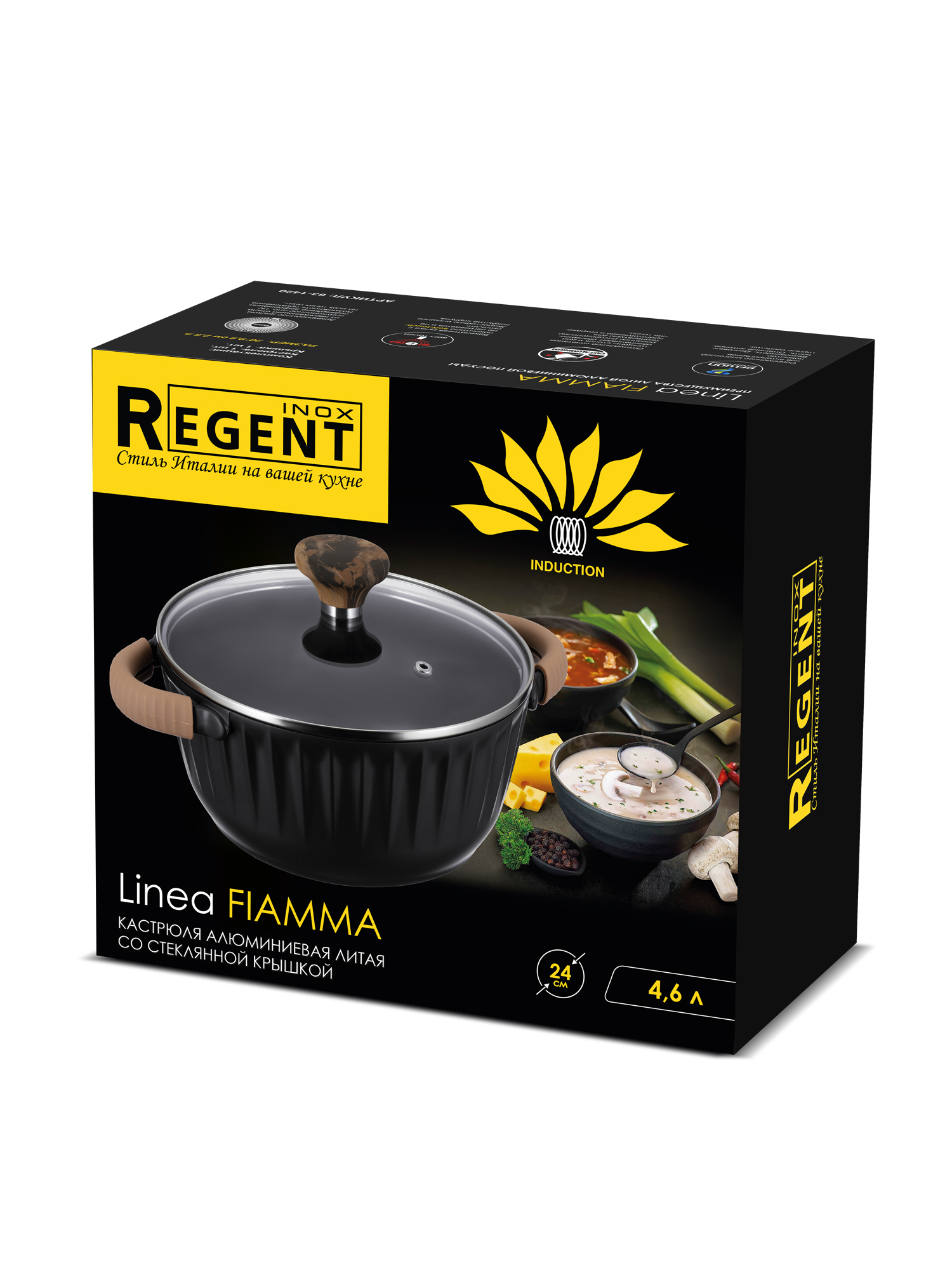 63-1424 кастрюля 4,6л с крышкой 24см linea fiamma (индукция). Linea FIAMMA - посуда из высококачественного литого алюминия. Благодаря прочному, износостойкому антипригарному покрытию Pfluon, наша посуда идеальна для приготовления блюд с минимальным количеством масла. Антипригарное внутреннее покрытие на водной основе не содержит кадмия, свинца и перфтроктановой кислоты (PFOA). Оптимальное сочетание толщины стенок и дна обеспечивает сбалансированное распределение температуры для приготовления и сохранения тепла. Армированное диском из нержавеющей стали индукционное дно. Не подвержено деформации. Возможность применения на всех типах плит. Бакелитовая ручка с покрытием soft-touch: не нагревается и не скользит. Силиконовые съемные ручки выполняют роль ручек-прихваток, легко снимаются позволяя использовать посуду без стеклянной крышки в духовом шкафу. Жаростойкое внешнее покрытие корпуса выдерживает до #43;230?C градусов. Материал изготовления: литой алюминий, бакелит Общая длина изделия, мм: 325. 000 Ширина изделия, мм: 250. 000 Линия: FIAMMA Ширина индивидуальной упаковки, мм: 140. 000 Высота индивидуальной упаковки, мм: 255. 000 Вес единичного товара нетто, кг: 1. 647 Литраж, л: 4. 6 Высота изделия до самой высокой точки изделия, мм: 180. 000 Толщина стенок, мм: 1. 6 Толщина дна, мм: 4. 5 Тип ручки: несъёмная Длина ручки, мм: 35,35 Ширина ручки, мм: 10 Материал ручки: силикон, литой алюминий Крышка: да Материал крышки: стекло, нержавеющая сталь, бакелит Длина крышки, мм: 250 Высота крышки с ручкой, мм: 70 Материал ободка на крышке: нержавеющая сталь Пароотвод на крышке: да Материал ручки крышки: бакелит Диаметр индукционного дна, мм: 185 Дно (капсульное/нет): да Можно использовать в микроволновой печи?: нет Можно использовать в духовом шкафу?: нет Можно мыть в посудомоечной машине?: да Штрихкод товара в транспортной упаковке: 14610275963127 Техданные: Размер изделия: 325х250х180 мм; Вес: 1,647кгМатериал изготовления: литой алюминий, бакелитТолщина дна: 4,5ммТолщина стенок: 1,6мм. Длина индивидуальной упаковки, мм: 270. 000 Высота изделия (внешняя по борту изделия), мм: 119. 000 Ширина крышки, мм: 250