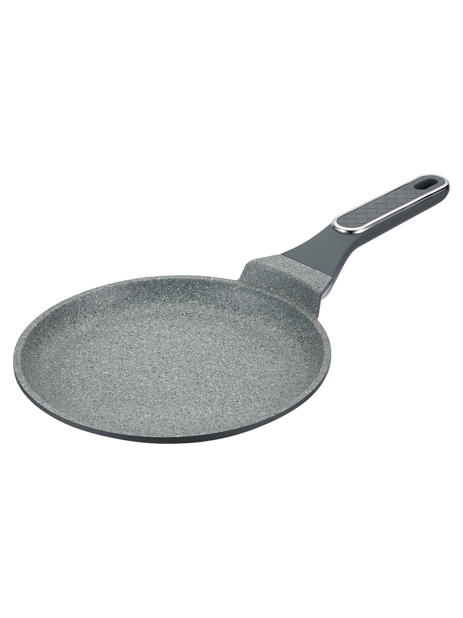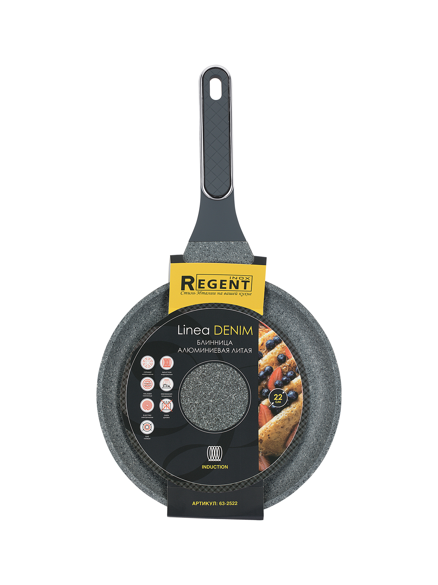 63-2522 сковорода блинная 22 см linea denim (индукция). Посуда Linea DENIM изготавливается из высококачественного литого алюминия. • Двухслойное антипригарное покрытие WISTONE с эффектом гранитной крошки, позволяет готовить пищу с минимальны количеством масла • внутреннее антипригарное покрытие на водной основе не содержит кадмия, свинца и перфтроктановой кислоты (PFOA) • эргономичная ручка из бакелита (термостойкий пластик) с покрытием soft touch и АВС-пластиком не выскользнет даже в мокрых руках. • Оптимальное соотношение толщины стенок и дна, обеспечивают равномерный нагрев при готовке • Linea DENIM это стильная и практичная индукционная посуда, которая станет отличным подарком • Подходит для использования на всех видах плит • Не подвергать воздействию высоких температур пустую посуду. Материал изготовления: литой алюминий, бакелит Общая длина изделия, мм: 425. 000 Ширина изделия, мм: 230. 000 Линия: DENIM Ширина индивидуальной упаковки, мм: 230. 000 Высота индивидуальной упаковки, мм: 60. 000 Вес единичного товара нетто, кг: 0. 6 Высота изделия до самой высокой точки изделия, мм: 60. 000 Толщина стенок, мм: 4 Толщина дна, мм: 1. 5 Тип ручки: несъёмная Длина ручки, мм: 195 Ширина ручки, мм: 30 Материал ручки: бакелитовая ручка с покрытием soft-touch Крышка: нет Диаметр индукционного дна, мм: 160 Дно (капсульное/нет): да Можно использовать в микроволновой печи?: нет Можно использовать в духовом шкафу?: нет Можно мыть в посудомоечной машине?: да Штрихкод товара в транспортной упаковке: 14610275963820 Техданные: Размер изделия: 425х230х60 мм; Вес: 0,6кгМатериал изготовления: литой алюминий, бакелитТолщина дна: 4ммТолщина стенок: 1,5мм. Длина индивидуальной упаковки, мм: 425. 000 Высота изделия (внешняя по борту изделия), мм: 22. 000