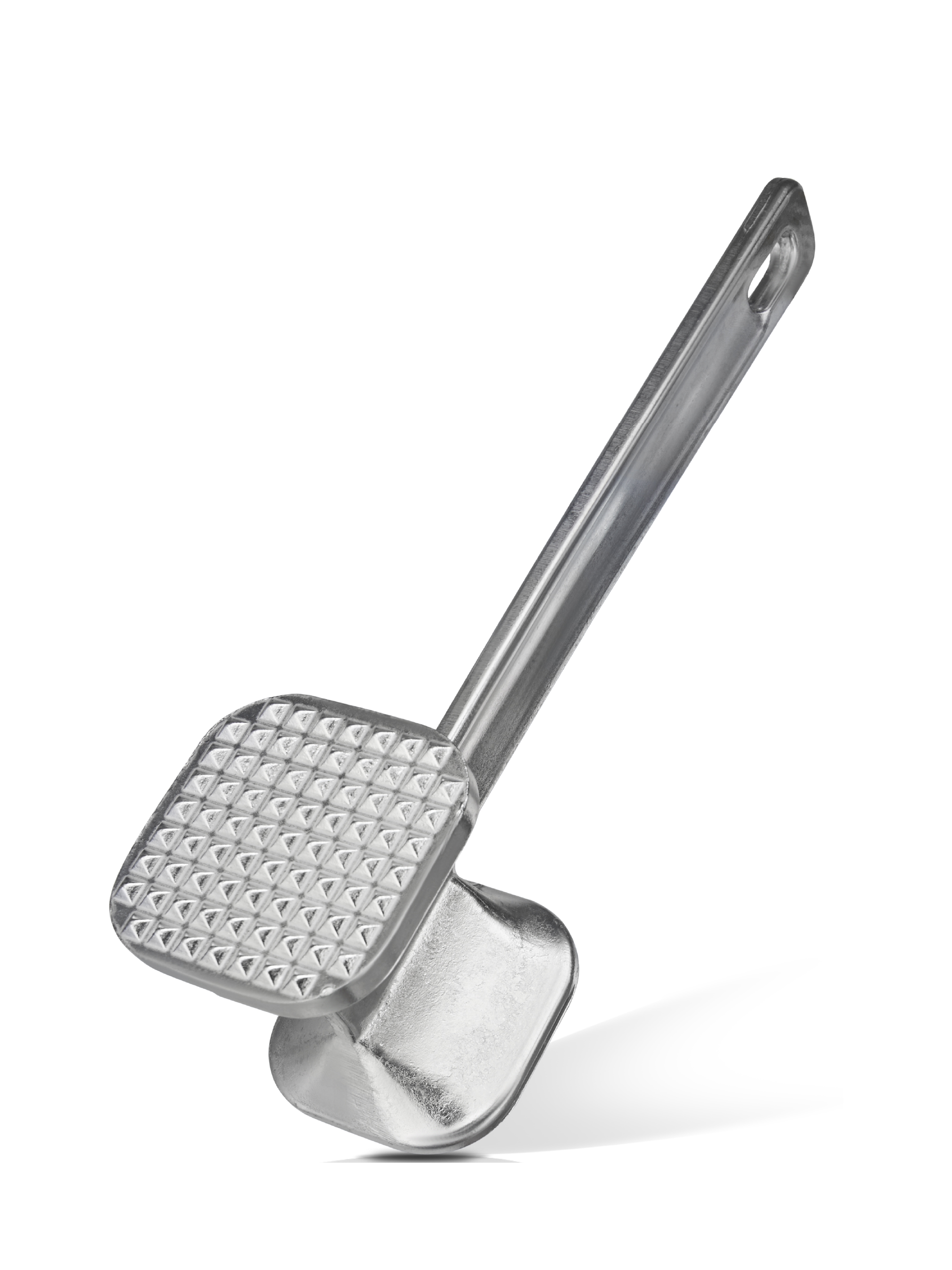 93-ac-pr-06 молоток для мяса алюминиевый 21х6 см linea presto. Молоток для мяса алюминиевый 140 гр. 21х6, Regent Inox Presto поможет вам без труда отбить мясо и приготовить его мягким, сочным и вкусным. Рабочая поверхность, выполненная из аллюминия, имеет две стороны: с гладкой поверхностью и с мелкими зубцами. На ручке молотка имеется специальное отверстие, за которое Вы можете подвесить его в удобное для вас место. Материал изготовления: алюминий Общая длина изделия, мм: 210 Ширина изделия, мм: 60 Линия: PRESTO Ширина индивидуальной упаковки, мм: 54 Высота индивидуальной упаковки, мм: 220 Вес единичного товара нетто, кг: 0. 146 Высота изделия до самой высокой точки изделия, мм: 50 Можно использовать в микроволновой печи?: Нет Можно использовать в духовом шкафу?: Нет Можно мыть в посудомоечной машине?: да Штрихкод товара в транспортной упаковке: 14650229053429 Техданные: Размер изделия: 210х60х50 мм; Вес: 0,146 кг; Материал изготовления: алюминий. Длина индивидуальной упаковки, мм: 54 Высота изделия (внешняя по борту изделия), мм: 50