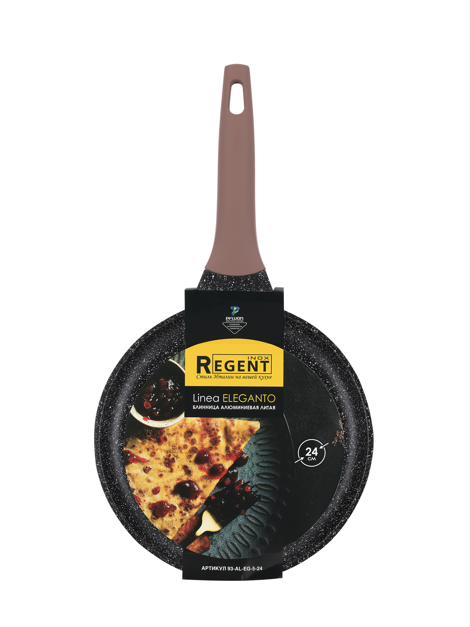 93-al-eg-5-24 блинница 24см linea eleganto (индукция). Литая блинная сковорода поможет Вам приготовить идеальные панкейки и сытные блины с начинками. Преимущества посуды из литого алюминия Linea Eleganto • Отличные антипригарные свойства благодаря многослойному антипригарному покрытию Pfluon • Бакелитовая ручка с покрытием soft-touch не скользит и не нагревается • Дно толщиной 5мм равномерно распределяет тепло по всей площади • Современный дизайн посуды Linea Eleganto идеально впишется в интерьер любой кухни • Работает на всех типах плит, включая индукционные Материал изготовления: литой алюминий Общая длина изделия, мм: 460 Ширина изделия, мм: 250 Линия: ELEGANTO Ширина индивидуальной упаковки, мм: 70 Высота индивидуальной упаковки, мм: 250 Вес единичного товара нетто, кг: 0. 756 Высота изделия до самой высокой точки изделия, мм: 70 Толщина стенок, мм: 1. 8 Толщина дна, мм: 5 Тип ручки: несъёмная Длина ручки, мм: 205 Ширина ручки, мм: 30 Материал ручки: бакелитовая ручка с покрытием soft-touch Крышка: нет Дно (капсульное/нет): да Можно использовать в микроволновой печи?: Нет Можно использовать в духовом шкафу?: нет Можно мыть в посудомоечной машине?: да Штрихкод товара в транспортной упаковке: 14650229056628 Техданные: Размер изделия: 460х250х70 мм; Вес: 0,756кгМатериал изготовления: литой алюминийТолщина дна: 5ммТолщина стенок: 1,8мм. Длина индивидуальной упаковки, мм: 455 Высота изделия (внешняя по борту изделия), мм: 20