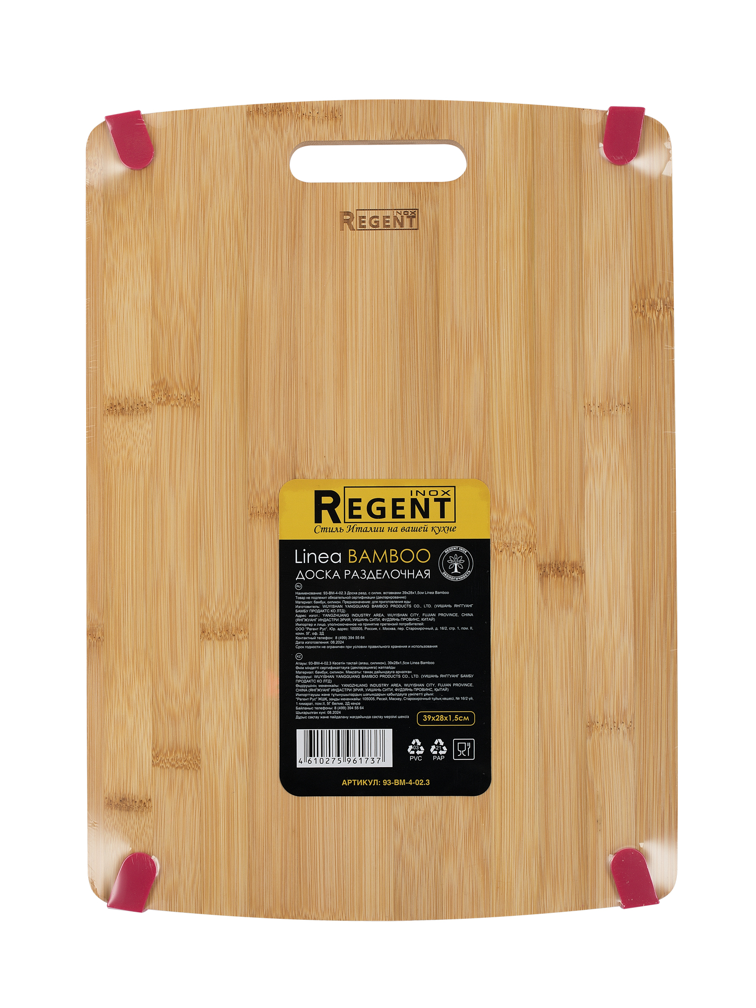 93-bm-4-02.3 доска разд. с силик. вставками 39х28х1,5см, Linea Bamboo