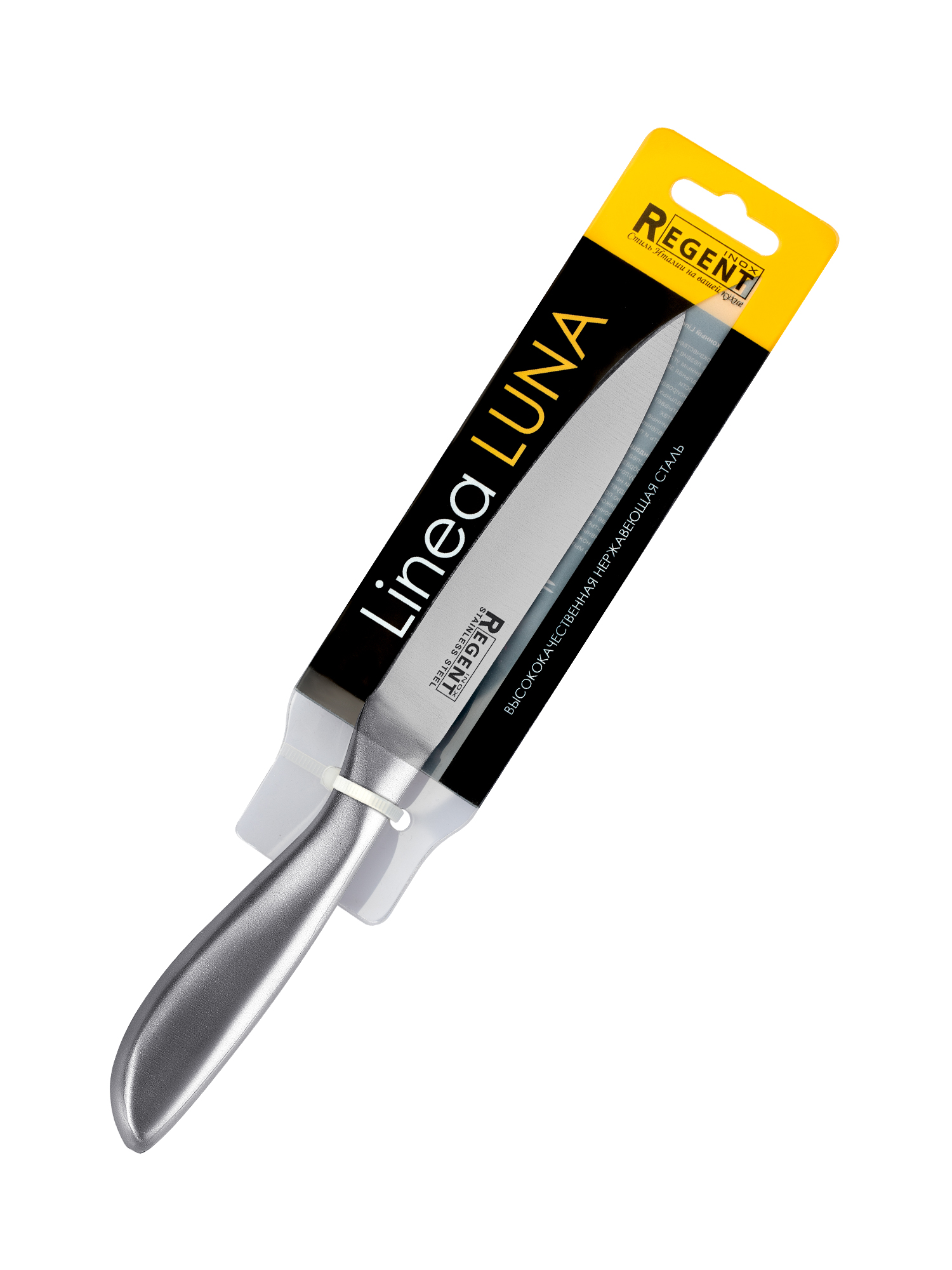 93-ha-5 нож универсальный 125/220мм (utility 5) linea luna. Нож для овощей LUNA knife сделан из нержавеющей стали, которая легко затачивается и очень долго остается острой. Данный материал придает изделию прочности и стойкости к механичным воздействиям. Нож 93-HA-5 предназначается для нарезки овощей и фруктов. Посуда привлекает своим стильным дизайном, классическими формами и легкостью в использовании. Сбалансированность этого изделия обеспечивает приложение минимальных усилий при резке. Ручка ножа имеет эргономичную форму и хорошо лежит в руке, создавая удобство и легкость эксплуатации. Материал изготовления: нержавеющая сталь Общая длина изделия, мм: 220 Ширина изделия, мм: 20 Линия: LUNA Ширина индивидуальной упаковки, мм: 55 Высота индивидуальной упаковки, мм: 270 Вес единичного товара нетто, кг: 0. 065 Высота изделия до самой высокой точки изделия, мм: 18 Длина рабочей поверхности, мм: 125 Можно использовать в микроволновой печи?: Нет Можно использовать в духовом шкафу?: Нет Можно мыть в посудомоечной машине?: нельзя Штрихкод товара в транспортной упаковке: 14650229053863 Техданные: Размер изделия: 220х20х18 мм; Вес: 0,065 кг; Материал изготовления: нержавеющая сталь. Длина индивидуальной упаковки, мм: 18 Высота изделия (внешняя по борту изделия), мм: 18
