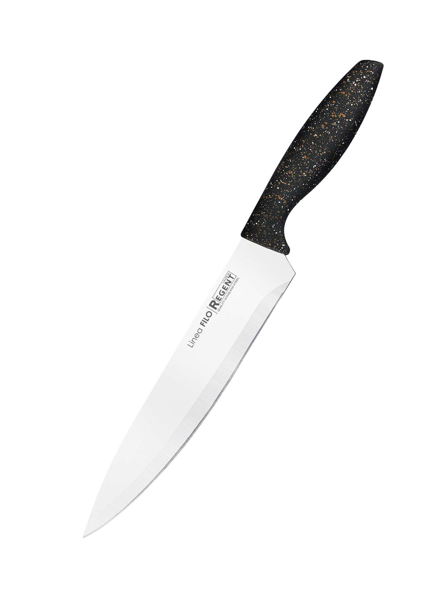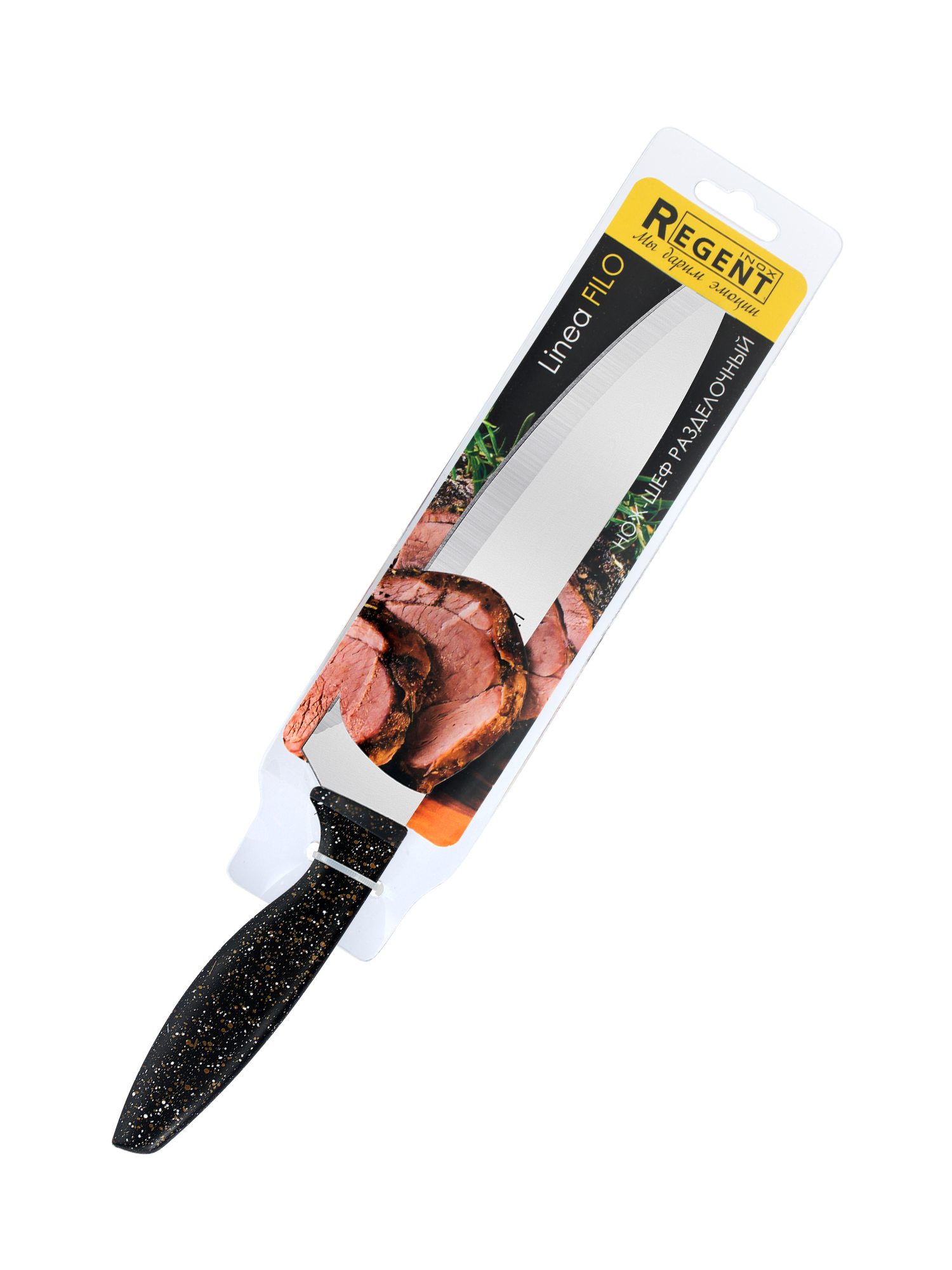 93-kn-fi-1 нож шеф разделочный 200/325мм (chef 8) linea filo. Нож шеф FILO разделочный легко справится с разделыванием мяса с костями, птицы и рыбы, шинкования овощей, нарезки хлеба, колбасы и сыра. Бархатистое покрытие ручек Soft-touch отличается мягкостью, но при этом достаточно прочное, не склонно к образованию трещин и сколов при ударах, удобно ложится в руку и не скользит. Прикоснувшись к нему один раз, вы поймете, что он не похож ни на какой другой и не захотите с ним расставаться! Клинок ножа FILO изготовлен из нержавеющей стали марки 2Cr13. Клинки из этой стали отличаются хорошей коррозийной устойчивостью, обладают высокой прочностью. Режущая кромка изделий из данной стали способна долгое время сохранять свою остроту, легко поддаются заточке, привести их в первоначальную форму, даже после активной эксплуатации, можно при помощи простого точильного камня или мусата. Материал изготовления: нержсталь Общая длина изделия, мм: 325 Ширина изделия, мм: 20 Линия: FILO Ширина индивидуальной упаковки, мм: 20 Высота индивидуальной упаковки, мм: 360 Вес единичного товара нетто, кг: 0. 116 Высота изделия до самой высокой точки изделия, мм: 40 Длина рабочей поверхности, мм: 200 Можно использовать в микроволновой печи?: Нет Можно использовать в духовом шкафу?: Нет Можно мыть в посудомоечной машине?: нельзя Штрихкод товара в транспортной упаковке: 14650229053917 Техданные: Размер изделия: 325х20х40 мм; Вес: 0,116 кг; Материал изготовления: нержсталь. Длина индивидуальной упаковки, мм: 70 Высота изделия (внешняя по борту изделия), мм: 40