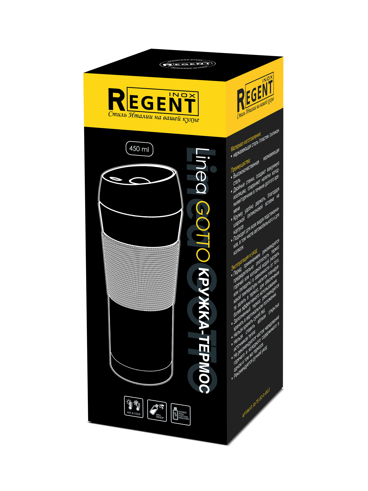 93-te-go-5-450.2 вакуумная кружка-термос 0,45л. linea gotto. Размер изделия: 80х80х215 мм. Вес: 0,34 кг. Материал изготовления: нержавеющая сталь, полипропилен, силикон. Материал изготовления: нержавеющая сталь, полипропилен, силикон Общая длина изделия, мм: 80. 000 Ширина изделия, мм: 80. 000 Линия: GOTTO Ширина индивидуальной упаковки, мм: 90. 000 Высота индивидуальной упаковки, мм: 220. 000 Вес единичного товара нетто, кг: 0. 34 Литраж, л: 0. 45 Высота изделия до самой высокой точки изделия, мм: 215. 000 Крышка: да Материал крышки: полипропилен Длина крышки, мм: 80 Высота крышки с ручкой, мм: 55 Пароотвод на крышке: нет Дно (капсульное/нет): нет Тип нержавеющей стали: 304 Можно использовать в микроволновой печи?: нет Можно использовать в духовом шкафу?: нет Можно мыть в посудомоечной машине?: нет Штрихкод товара в транспортной упаковке: 14610275961598 Техданные: Размер изделия: 80х80х215 мм; Вес: 0,34 кгМатериал изготовления: нержавеющая сталь, полипропилен, силикон. Длина индивидуальной упаковки, мм: 90. 000 Высота изделия (внешняя по борту изделия), мм: 215. 000 Ширина крышки, мм: 80