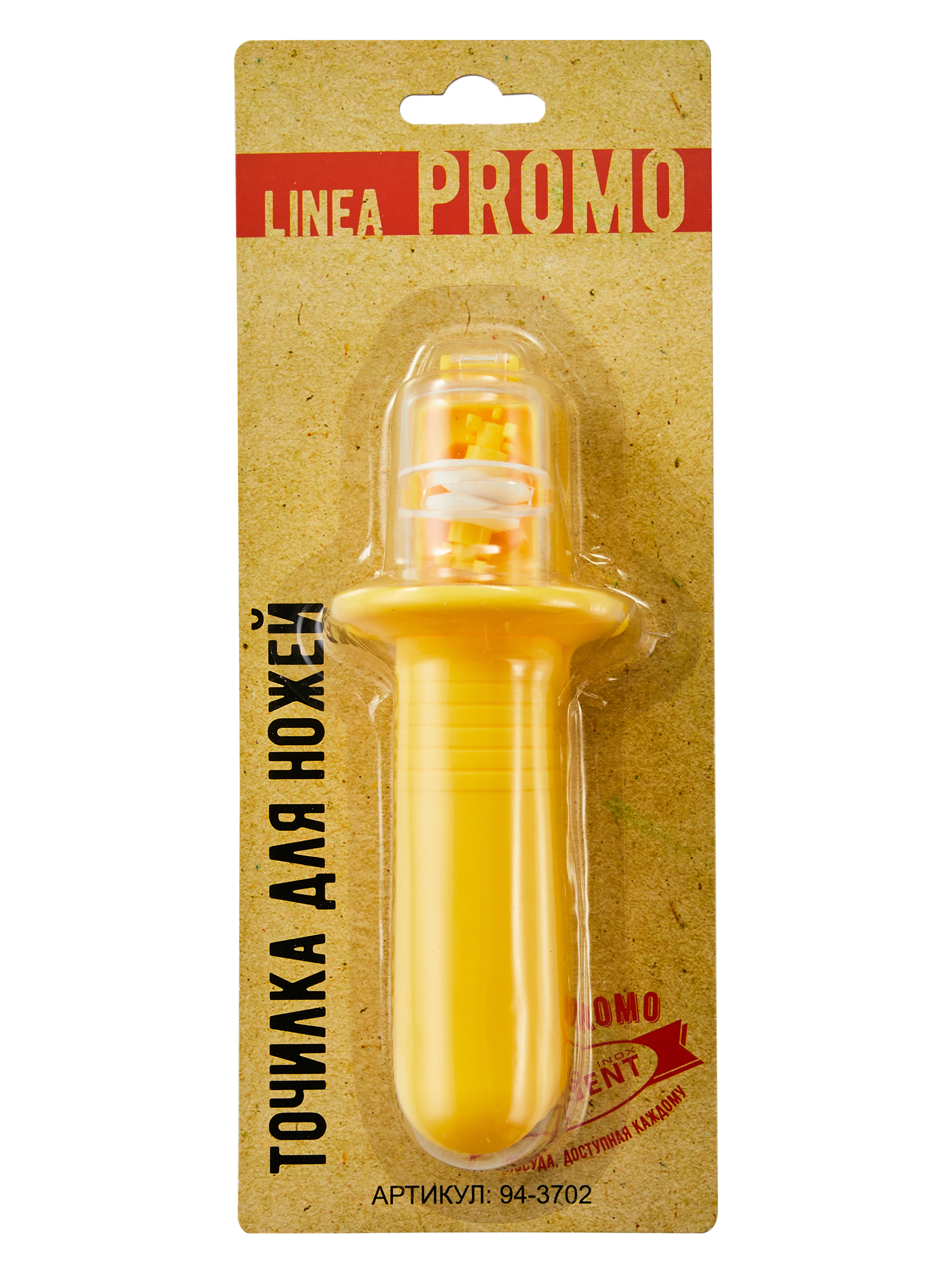 94-3702 кухонная точилка для ножей 14х6х5 см (1 шаг заточки) linea promo. Кухонная точилка для ножей (1 шаг заточки) Linea PROMO. материал изготовления пластик и сталь. применяется для заточки всех видов ножей кроме керамических и с зубчатым лезвием. угол заточки задан точильным модулем, что исключает возможность неправильной заточки. не рекомендуется использовать в посудомоечной машине. после заточки промойте нож и точилку под проточной водой и высушите. 14х6х5см Linea PROMO Материал изготовления: пластик, сталь Общая длина изделия, мм: 140 Ширина изделия, мм: 60 Линия: PROMO Ширина индивидуальной упаковки, мм: 60 Высота индивидуальной упаковки, мм: 50 Вес единичного товара нетто, кг: 0. 084 Высота изделия до самой высокой точки изделия, мм: 50 Можно использовать в микроволновой печи?: Нет Можно использовать в духовом шкафу?: Нет Можно мыть в посудомоечной машине?: нельзя Техданные: Размер изделия: 140х60х50 мм; Вес: 0,084 кг; Материал изготовления: пластик, сталь. Длина индивидуальной упаковки, мм: 140 Высота изделия (внешняя по борту изделия), мм: 50